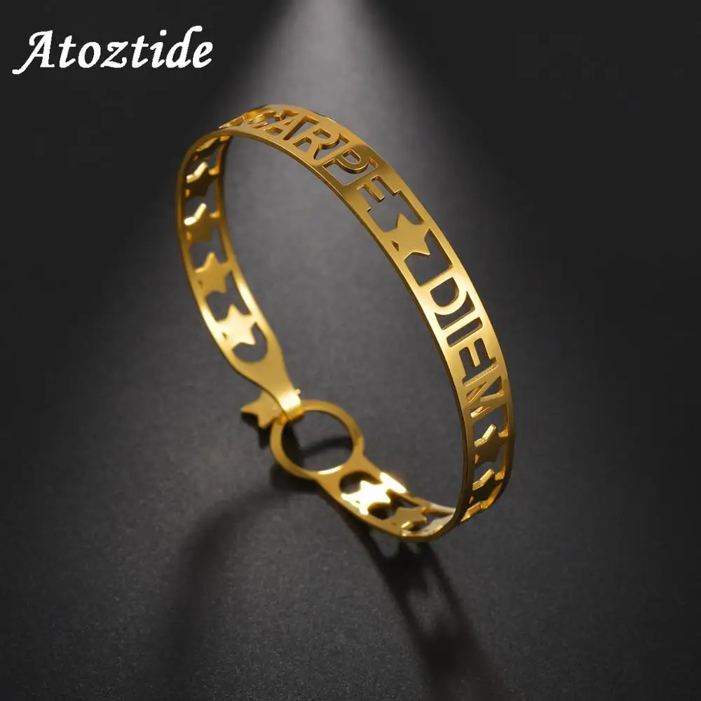 Название :Женский браслет с надписью Atoztide, браслет из нержавеющей стали с золотой полой звездой, ювелирное изделие, лучший подарок