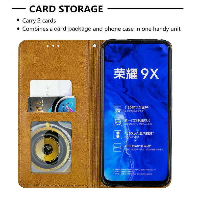 Материал Высокое качество искусственная кожа и силикон/ТПУ + магнит Особенности Поставляется со вставным магнитом, роскошный из искусственной кожи чехол-книжка из ТПУ, ударопрочный чехолЧехол Подходящая модель ДляHuawei Honor 9X(6,59 дюйма) ДляHuawei Honor 9X Pro(6,59 дюйма) ДляHuawei Honor 9X Global Edition(6,59 дюйма) ДляHuawei Honor 9X Premium(6,59 дюйма) Комплектация 1 * чехол