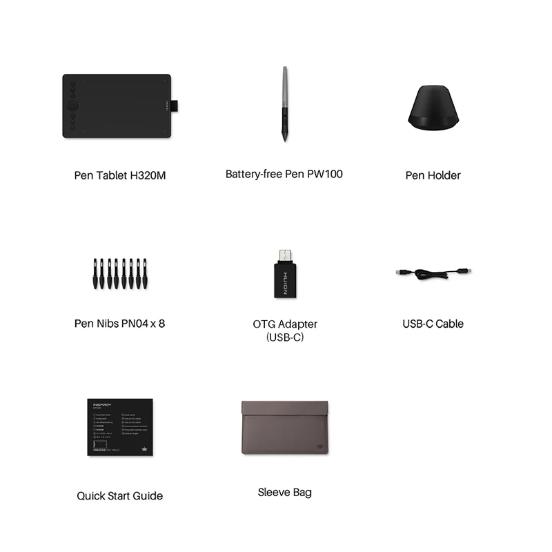 Графический планшет для рисования Huion Black H320M и цифровой ЖК-планшет для рисования со стилусом без батареи для AndroidПК