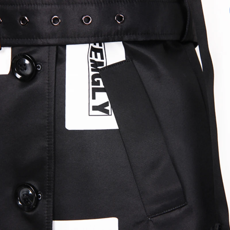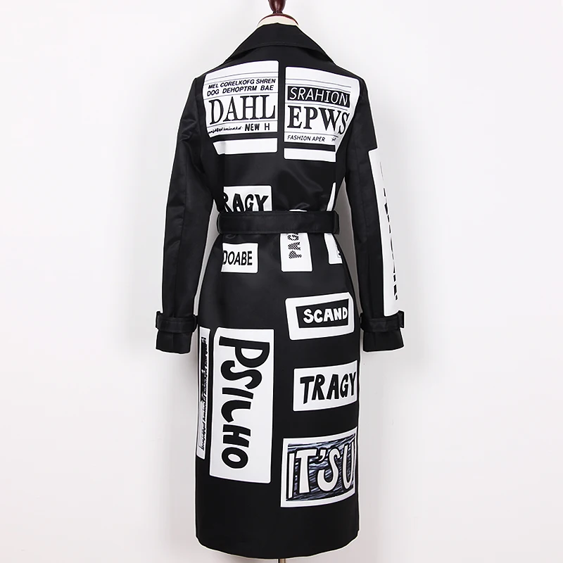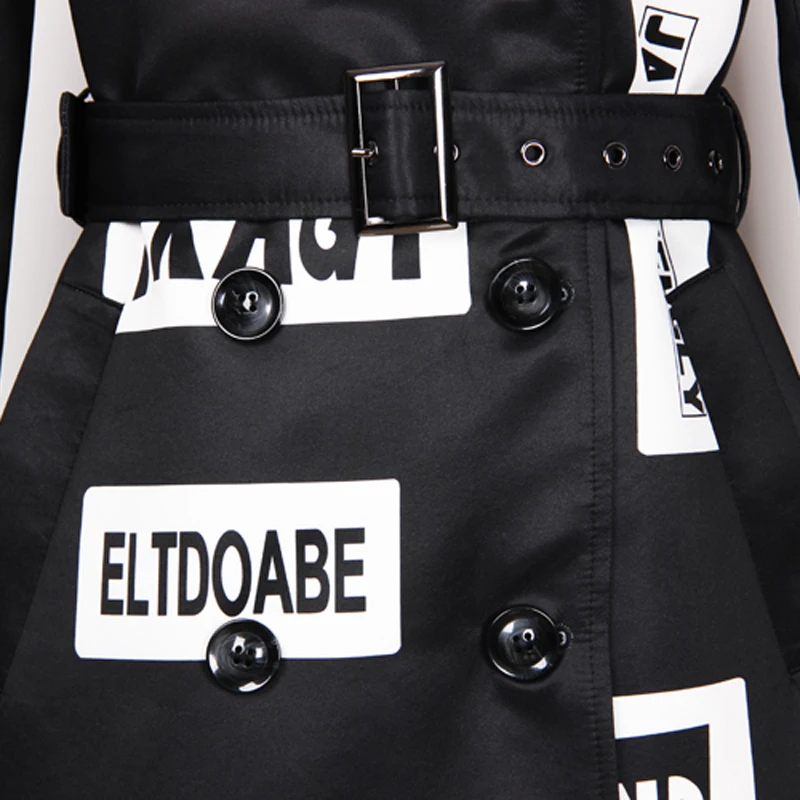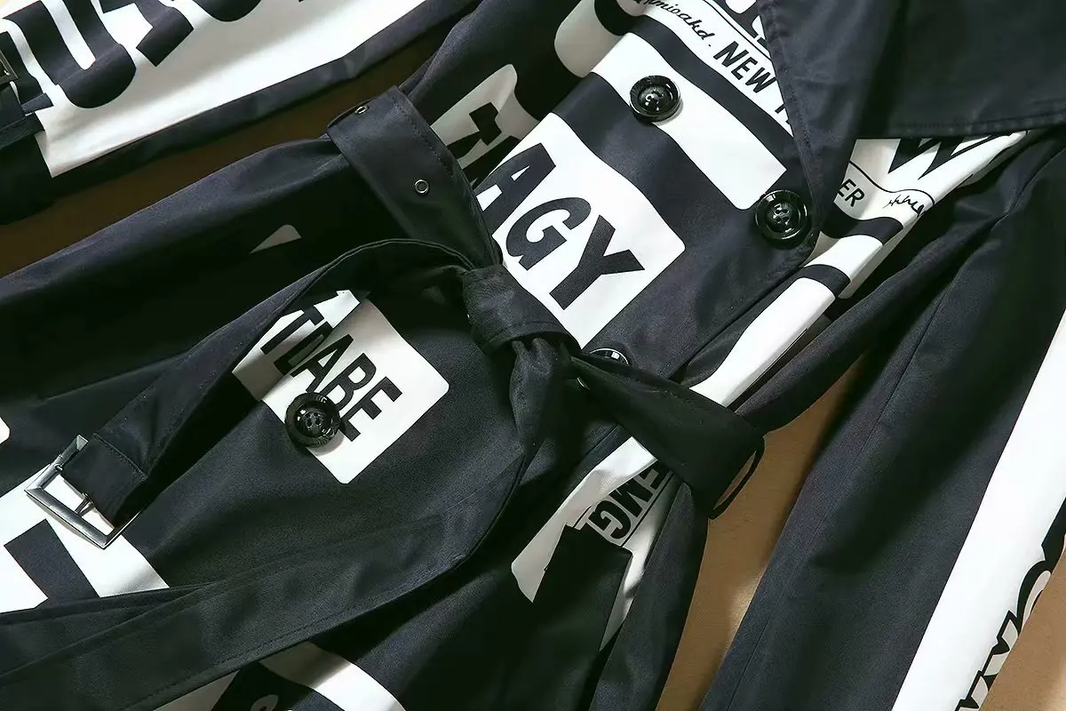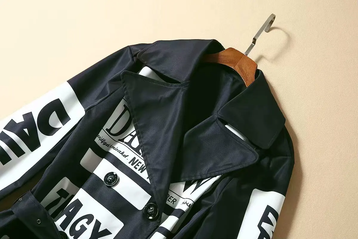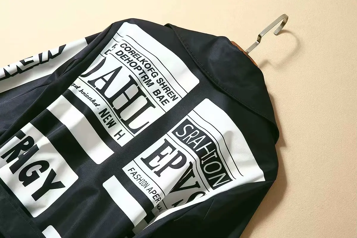 Женская ветровка с длинным рукавом, двубортная Свободная куртка с принтом букв и поясом, S-3XL