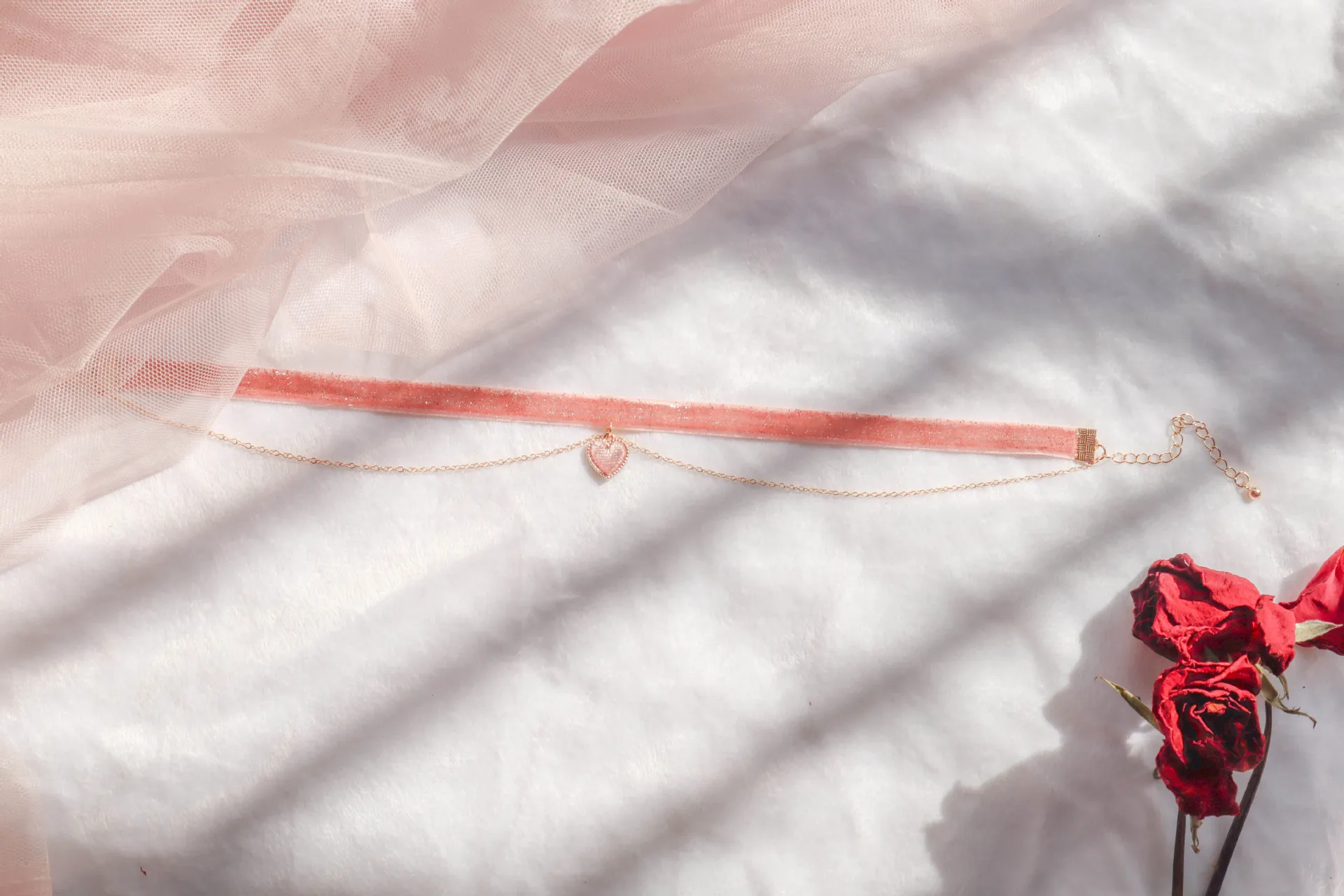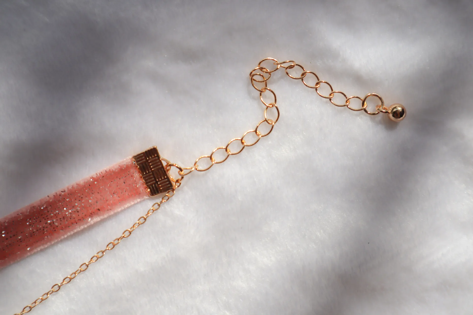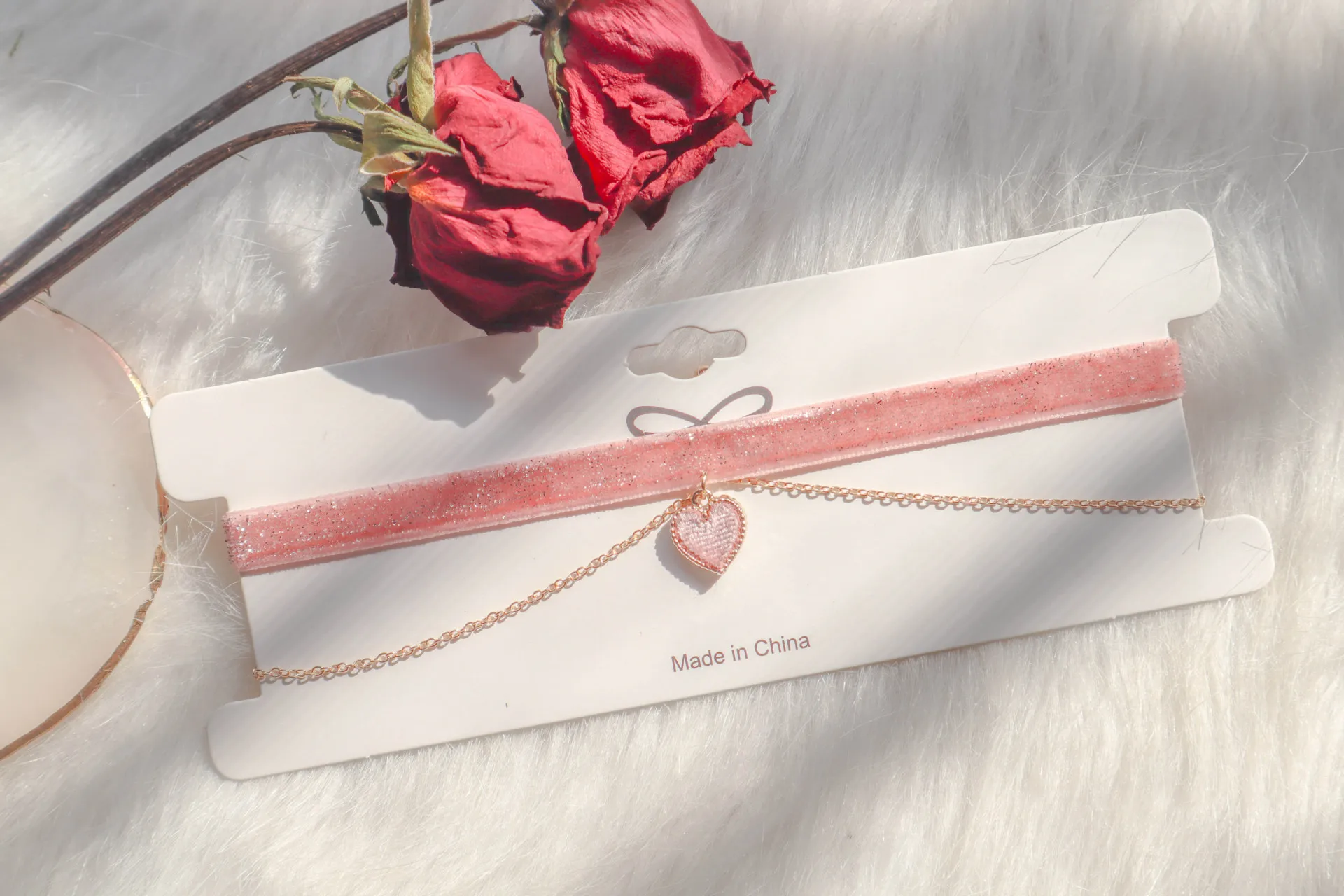 Ожерелье-чокер женское, бархатное, с блестками, подвески в виде сердца