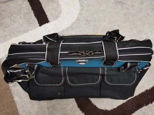 качественная нарядная удобная сумка, входит много, карманов много и внутри и снаружи, но если ширина и глубина достаточные, то объем карманов не очень большой, максимум 1-2 пассатижей на карман, самые большие карманы по торцам, пузырь 07 вошёл ток туда, все инструменты и необходимые тех жидкости разложил)))), доволен
