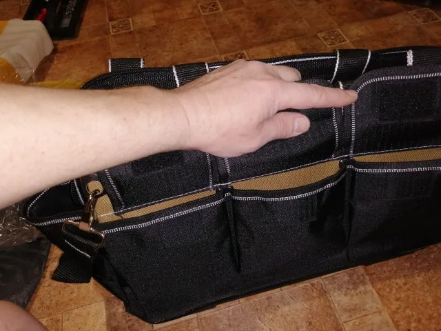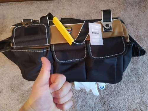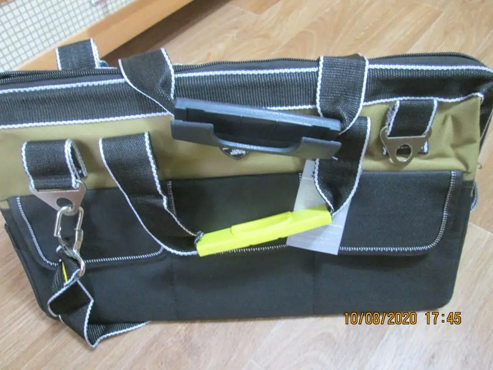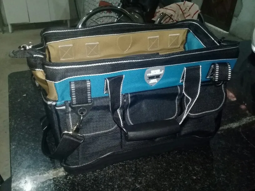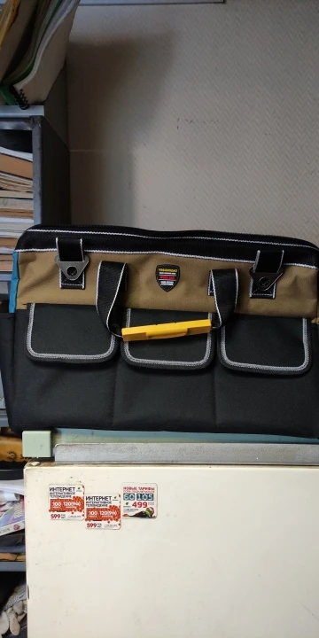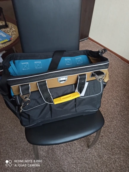 Сумка просто высший класс!!!Заменит средний по размеру пластиковый ящик легко...Надоело выкапывать каждый раз инструмент из ящика...Тут куча карманов и удобнее в переноске...Размер в самый раз...Закажу еще одну по меньше под слесарный инструмент, эту буду использовать под электрический... Продавец общительный, реагирует быстро...По стечению обстоятельств моя сумка шла пешком из Китая 1,5 месяца вместо пяти дней...Не оказалось на российском складе...Ну да ладно...Главное пришла не запыхалась)))Обещала служить долго и честно))) Спасибо!!!Я доволен!!!