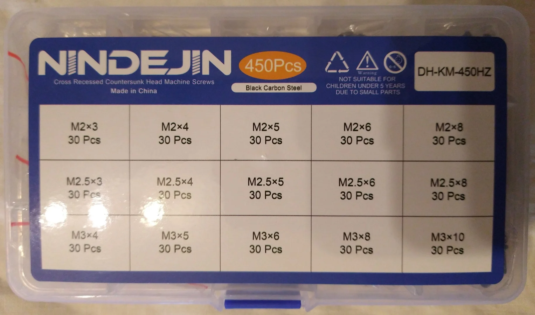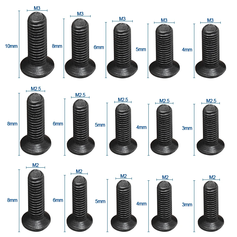 Количество модели: M2 x 3 мм 30 шт.; M2 x 4 мм 30 шт.; M2 x 5 мм 30 шт.; M2 x 6 мм 30 шт.; M2 x 8 мм 30 шт.; m2.5 x 3 мм 30 шт; M2.5 x 4 мм 30 шт; M2.5 x 5 мм 30 шт; M2.5 x 6 мм 30 шт; M2.5 x 8 мм 30 шт; m3 x 4 мм 30 шт; M3 x 5 мм 30 шт; M3 x 6 мм; M3 x 8 мм 30 шт; M3 x 10 мм 30 шт.