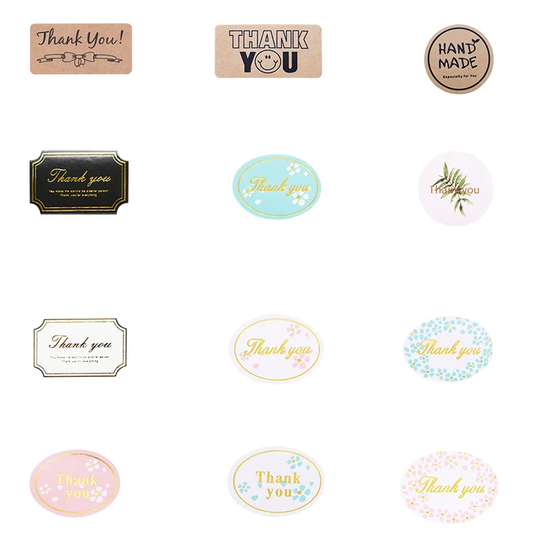Наклейки для упаковки, черно-белые, с надписью Thank You, 80-160 шт.10 листов