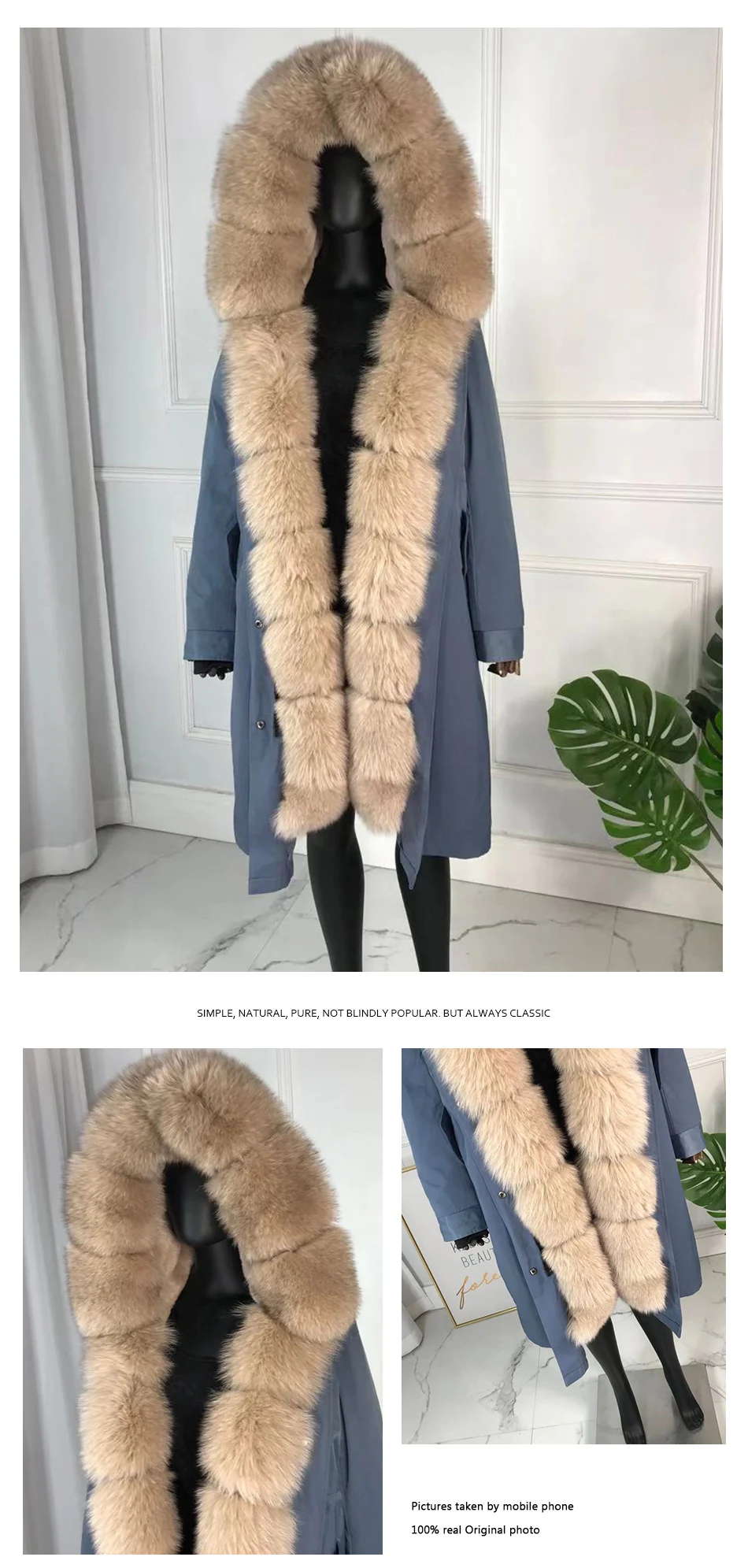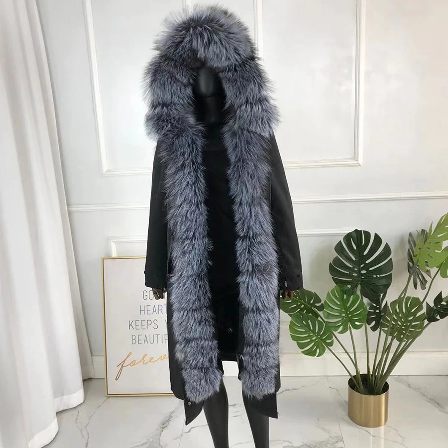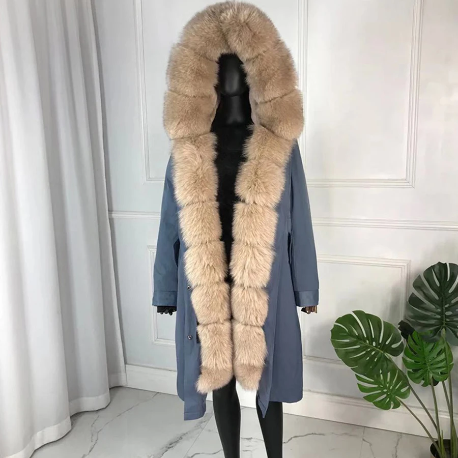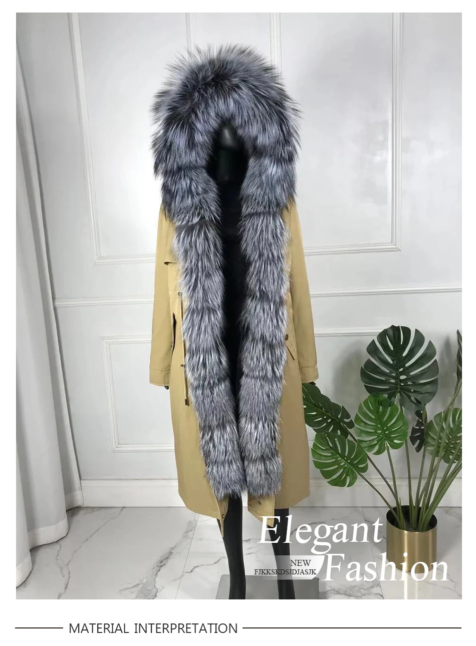 CNEGOVI Kreal натурального меха лисы пальто, куртка-парка с меха лисы Большой меха лисы воротник кроличий мех вельветовый толстый теплый; Ботинки из водонепроницаемого материала