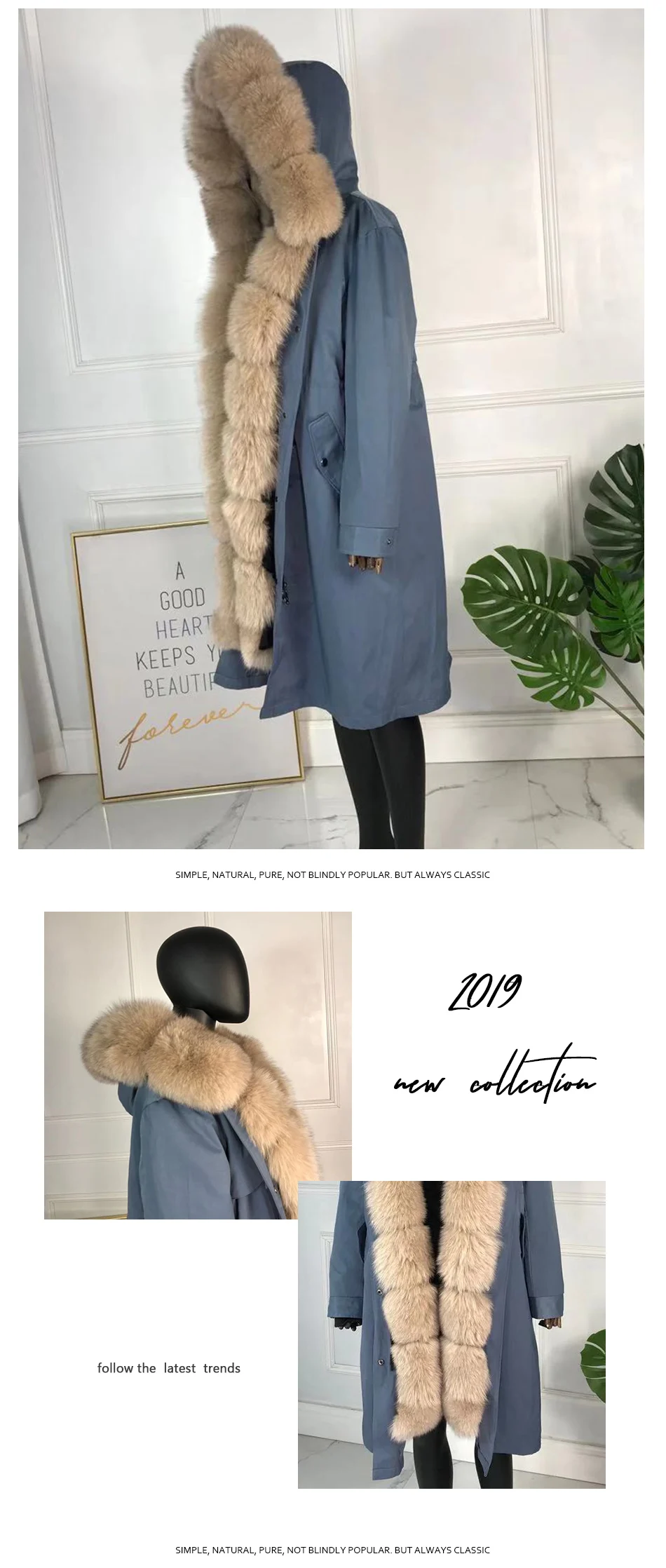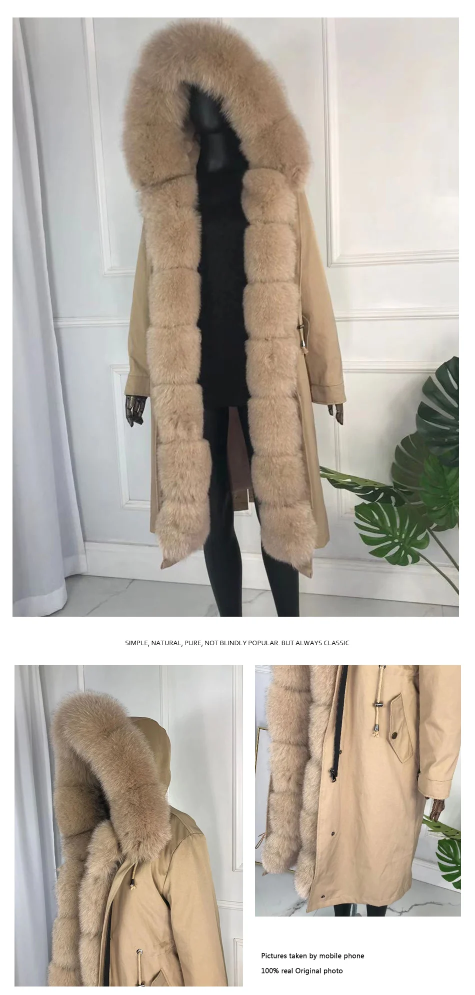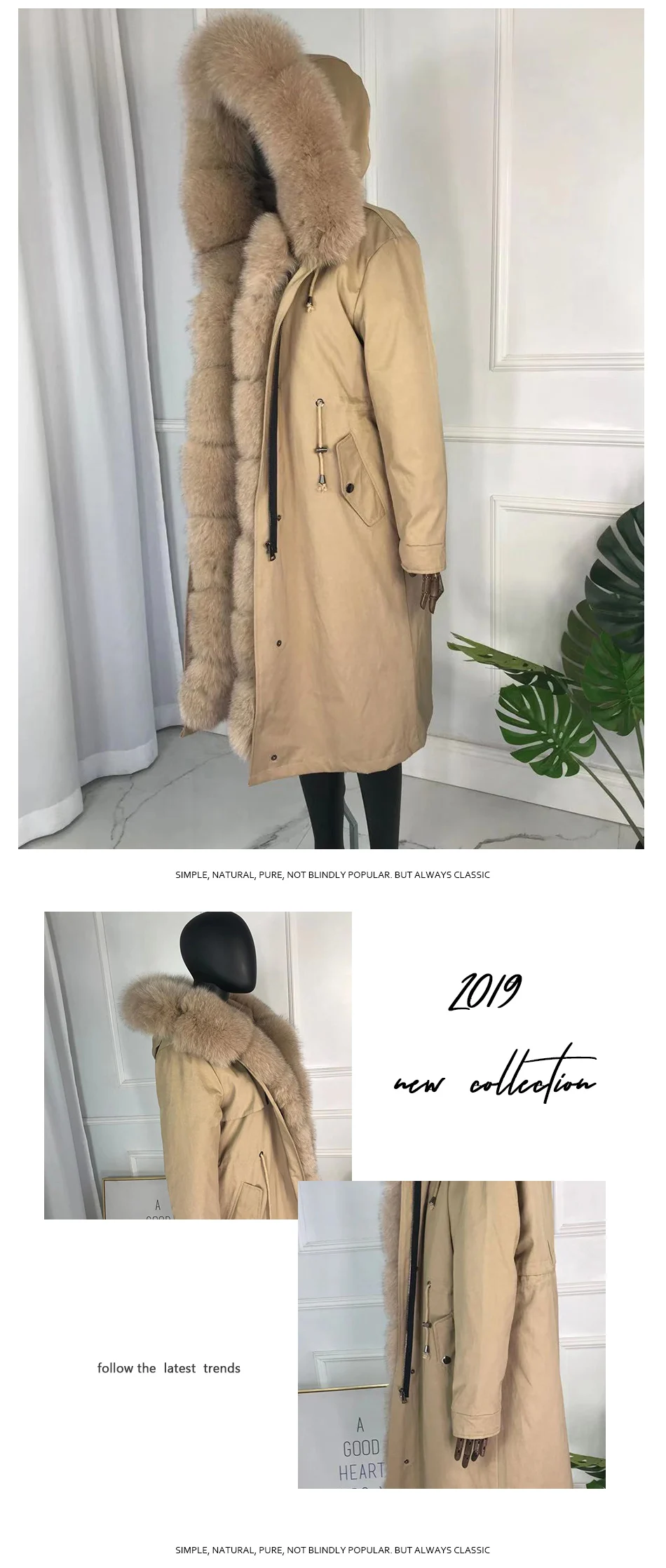 CNEGOVI Kreal натурального меха лисы пальто, куртка-парка с меха лисы Большой меха лисы воротник кроличий мех вельветовый толстый теплый; Ботинки из водонепроницаемого материала