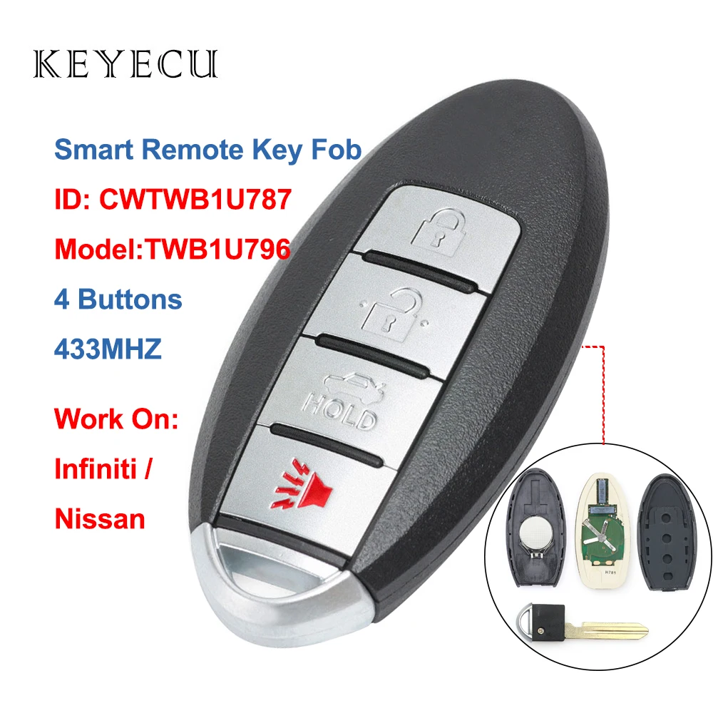 Keyecu CWTWB1U787 Smart Автомобильный Брелок дистанционного управления с ключом 4 кнопки 433 МГц для Nissan Armada 2017-2018 для Infiniti Q70 M56 M37 M35, TWB1U796