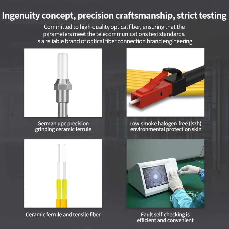 Оптоволоконные перемычки прошли множество тщательных тестов перед тем, как покинуть завод, убедитесь, что передняя часть волоконного сердечника безупречна, потери возврата вставки, оптические потери, соответствуют телекоммуникационным стандартам