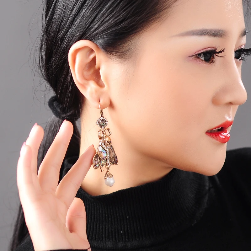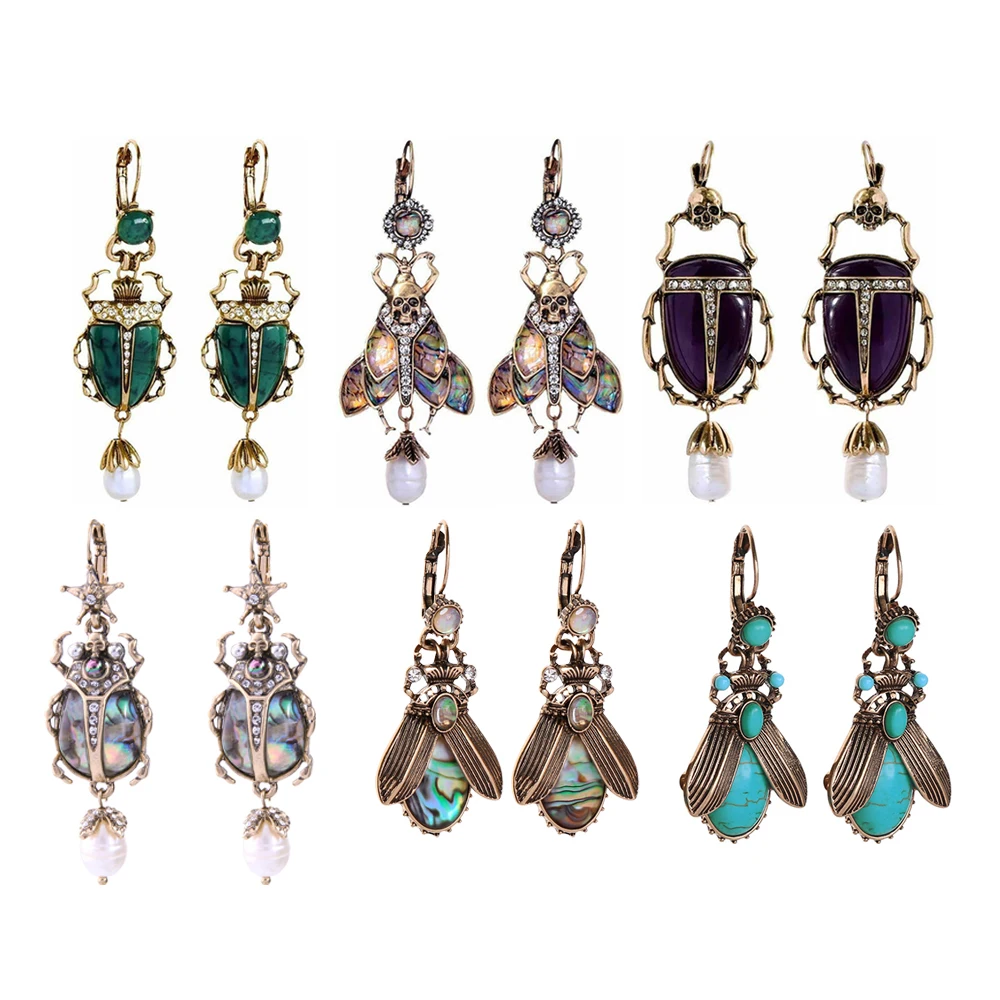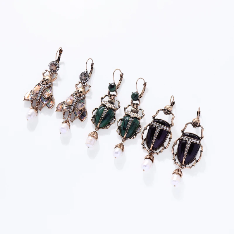 Элитные насекомые индийские ювелирные изделия, винтажные серьги-капли золотого цвета, кулон с жемчугом Beatles, модный скелет недели