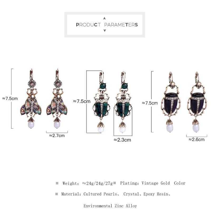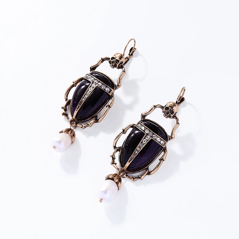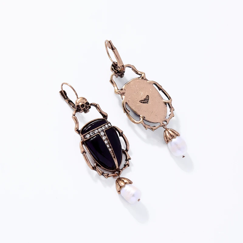 Высококачественные насекомые индийские ювелирные изделия, винтажные серьги-капли золотого цвета, кулон с жемчугом Beatle, модный скелет недели