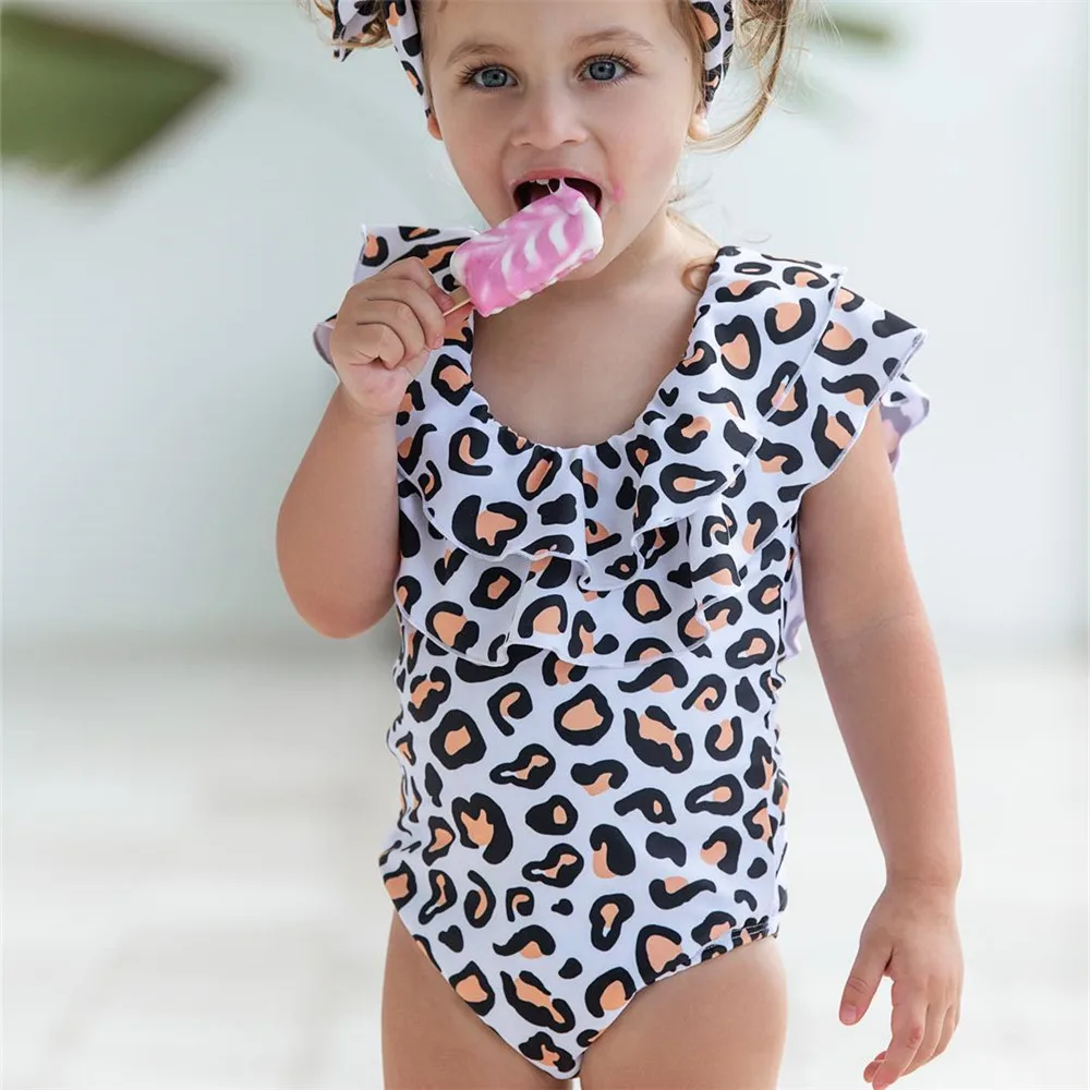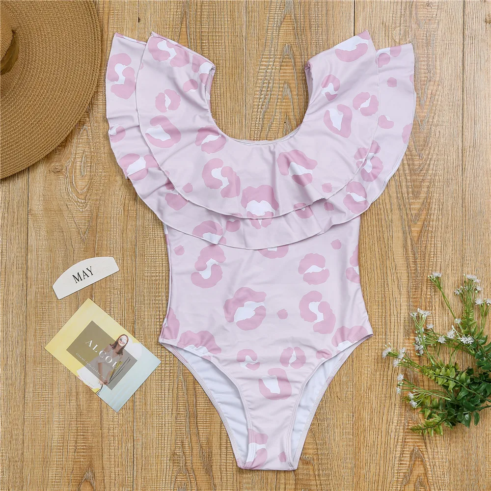 Купальник для мамы и дочки, Леопардовый купальник с оборками, для м...