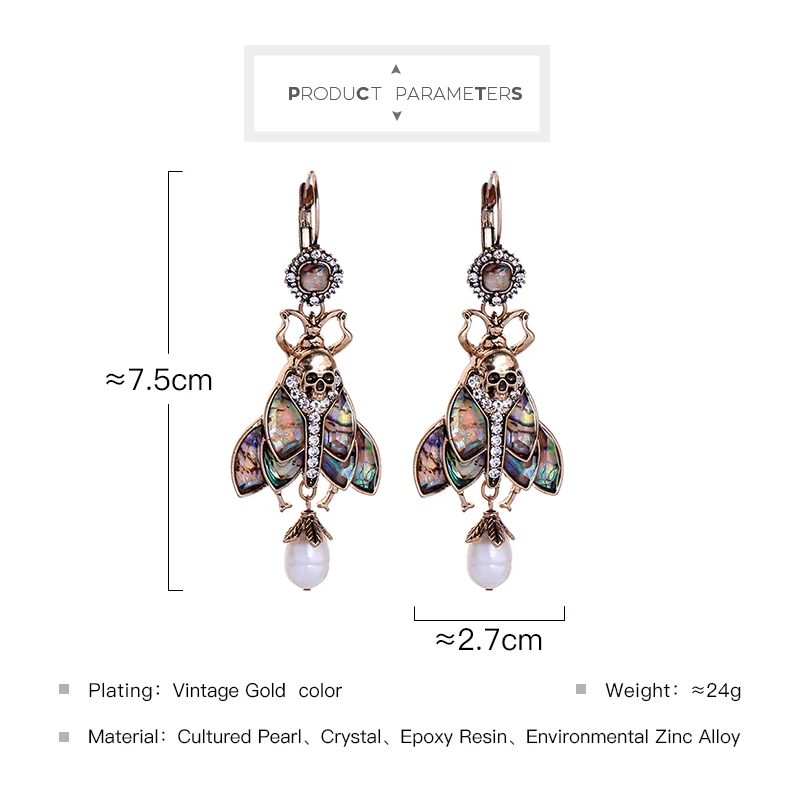 Серьги-капли в стиле "панк" для женщин подарок красочные смолы насекомое культивированный жемчуг кристалл неоготический череп винтажные модные ювелирные изделия