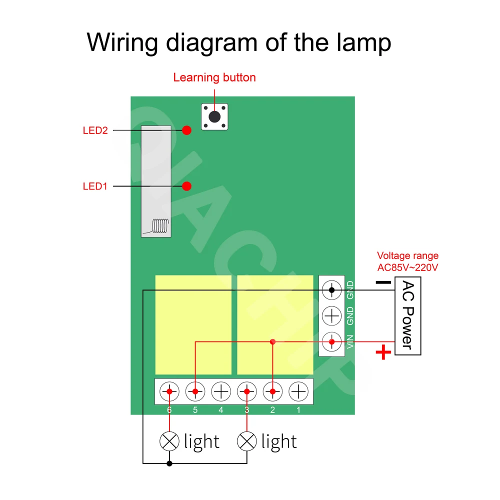 Переключения:Нажмите один раз кнопку дистанционного управления, реле подключается, нажмите дважды кнопку дистанционного управления, реле dis-подключается.