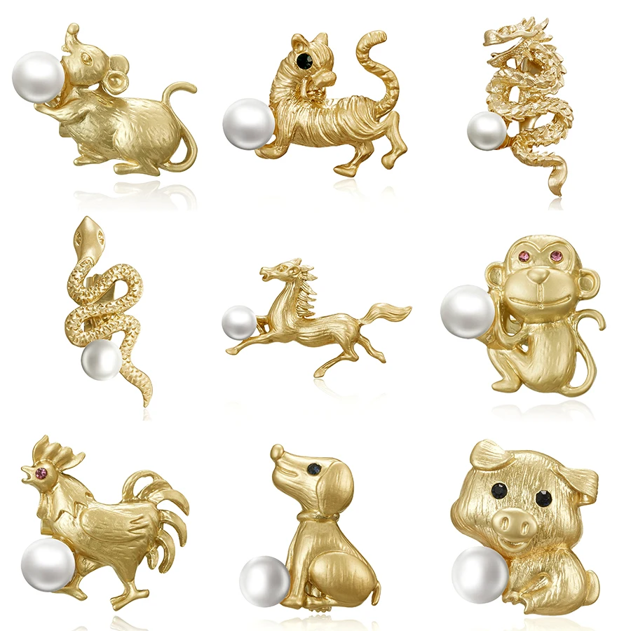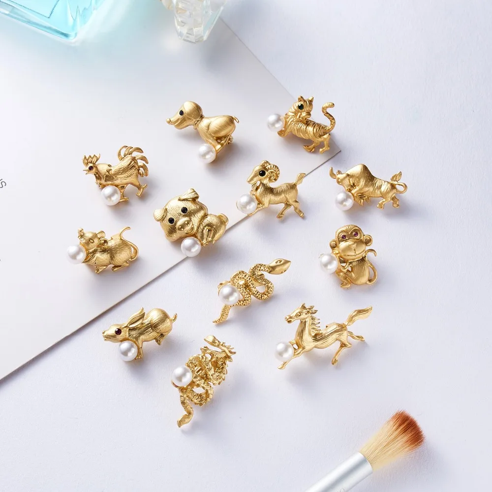 Зодиак жемчуг немой Золотой животные маленькая брошь китайская мультяшная мышь из зодиака Тигр овца обезьяна, курица собака свинья значок из сплава
