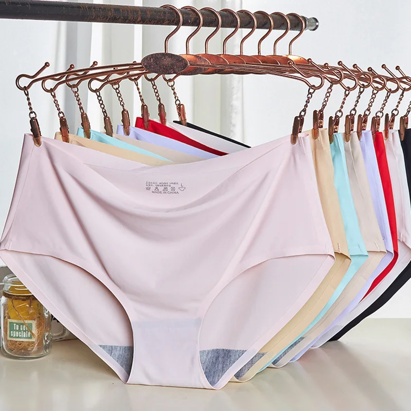 Нижнее белье из ледяного шелка размера плюс, женские трусики, женское нижнее белье, сексуальное белье пуш-ап, бесшовные трусики со средней талией для женщин