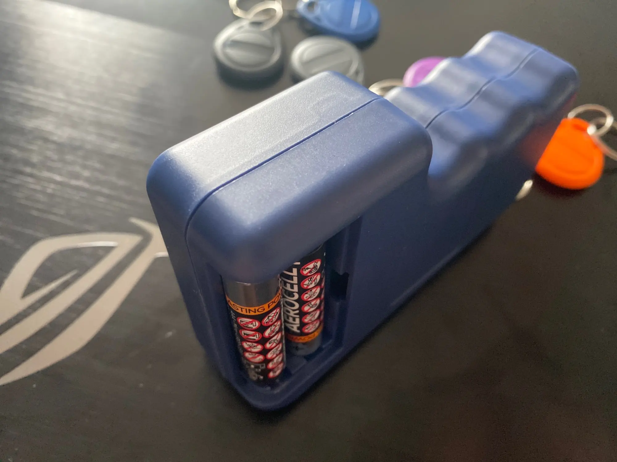 Программатор довольно лёгкий, работает от друх ААА-батареек и умеет лишь считывать и записывать RFID метки. Но от него за такие деньги большего и не требуется.