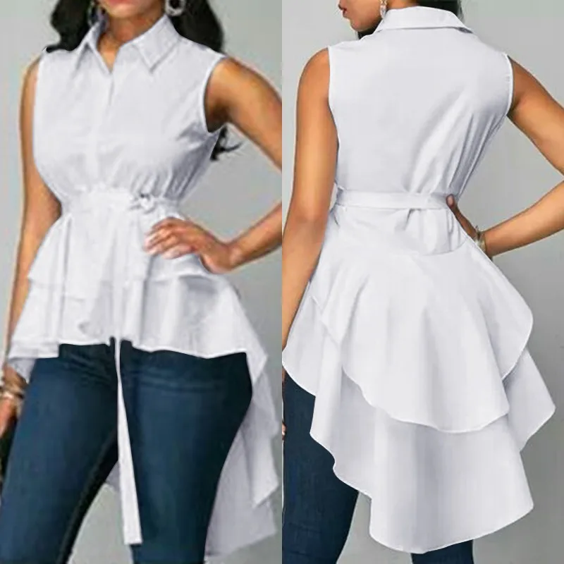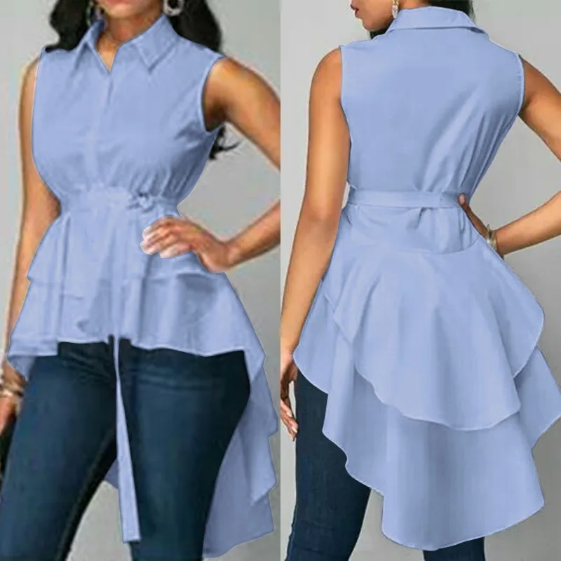 Женские топы с рюшами 2021, ассиметричная блузка ZANZEA, элегантная повседневная рубашка в стиле Махаон, женская блуза с отворотом, однотонная туника
