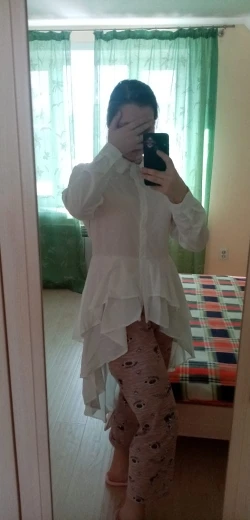 Не заказывайте девушки если ваша грудь больше первого размера. Эта рубашка на груди у меня не застёгивается.... Брала на размер больше из-за груди, и всё равно . С моим 3 полным размером, она не сходится... Материал тонкий, быстро мнущийся. Сама рубашка красивая, но что теперь с ней делать... С переди она ещё и очень короткая, едва прикрывает пупок, не как на картинке. С зади ниже колена.