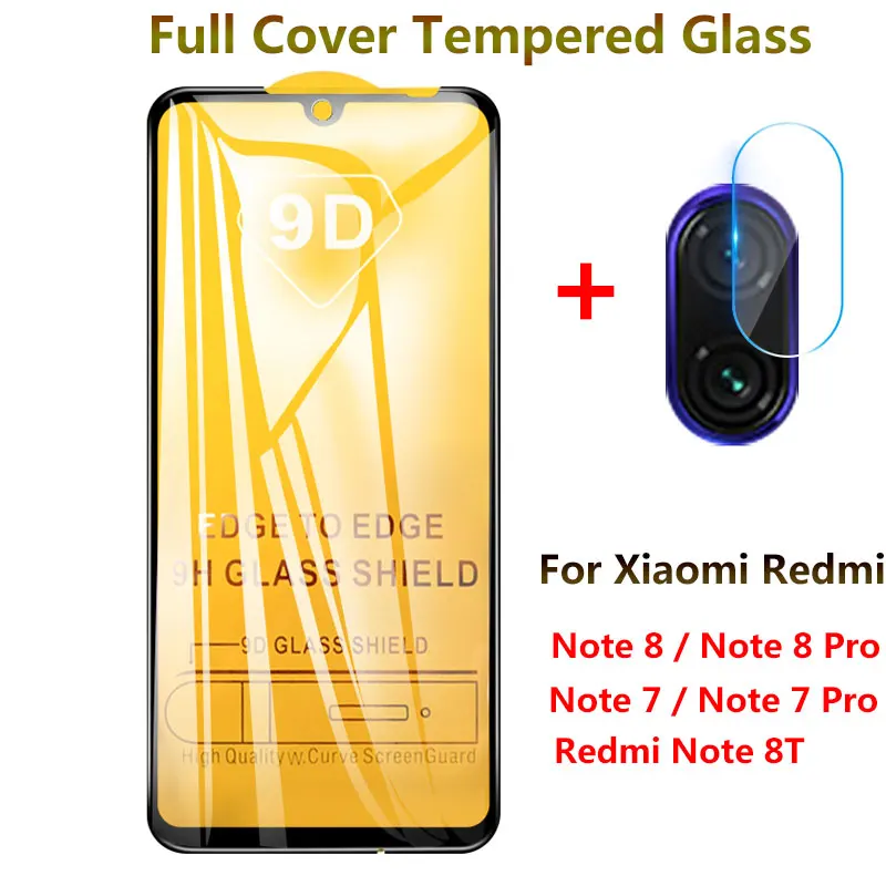 2 в 1 9D полное покрытие стекло для Xiaomi Redmi Note 9s 8 9 10 pro...