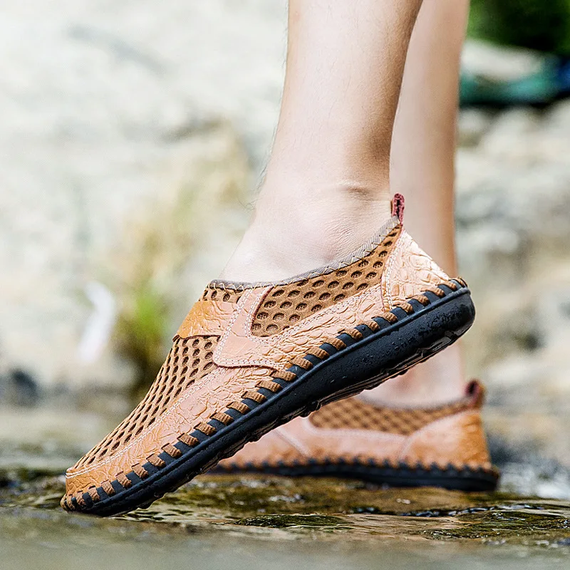 Мужские и женские кожаные шлепанцы COWCOM, летние сетчатые шлепанцы с холодной воздушной сеткой, с поверхностью 2020, 47, 48, мужская обувь, CLK, дышащие кроссовки с сеточкой