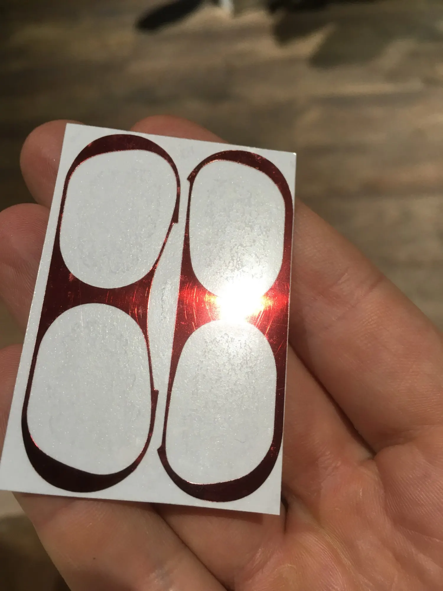 Ну в целом пришла не красная, а розоватая. Наклеить идеально не получилось, пробовал минут 10 нормально приклеить. Так же когда снимал пленку защитную, немного "стерлось напыление" на одной из наклеек. В целом штука норм, но из-за кривизны выглядит колхозно, покупать только если есть лишняя сотка и хочется тупо "прокачать" свой футляр аки Экзибит русскую девятку. Крч продавцу 4/5, самому продукту 2/5. Такие дела