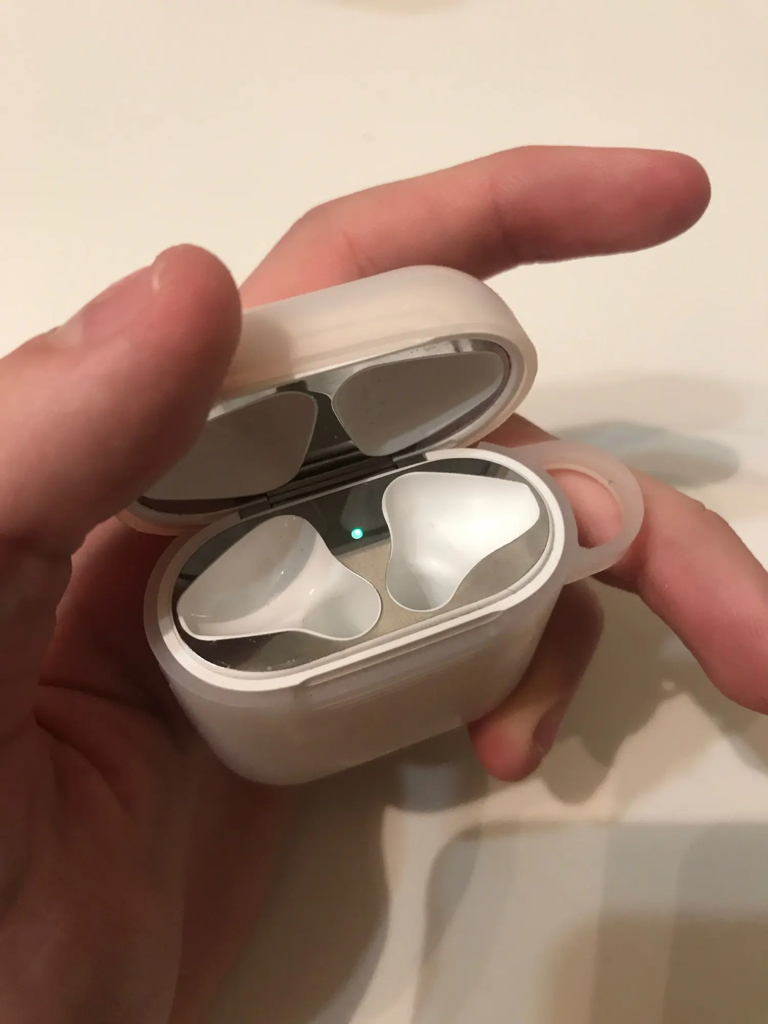 Это превосходно для защиты airpods, однако, поставив два airpods, вот почему я должен был просто положить один