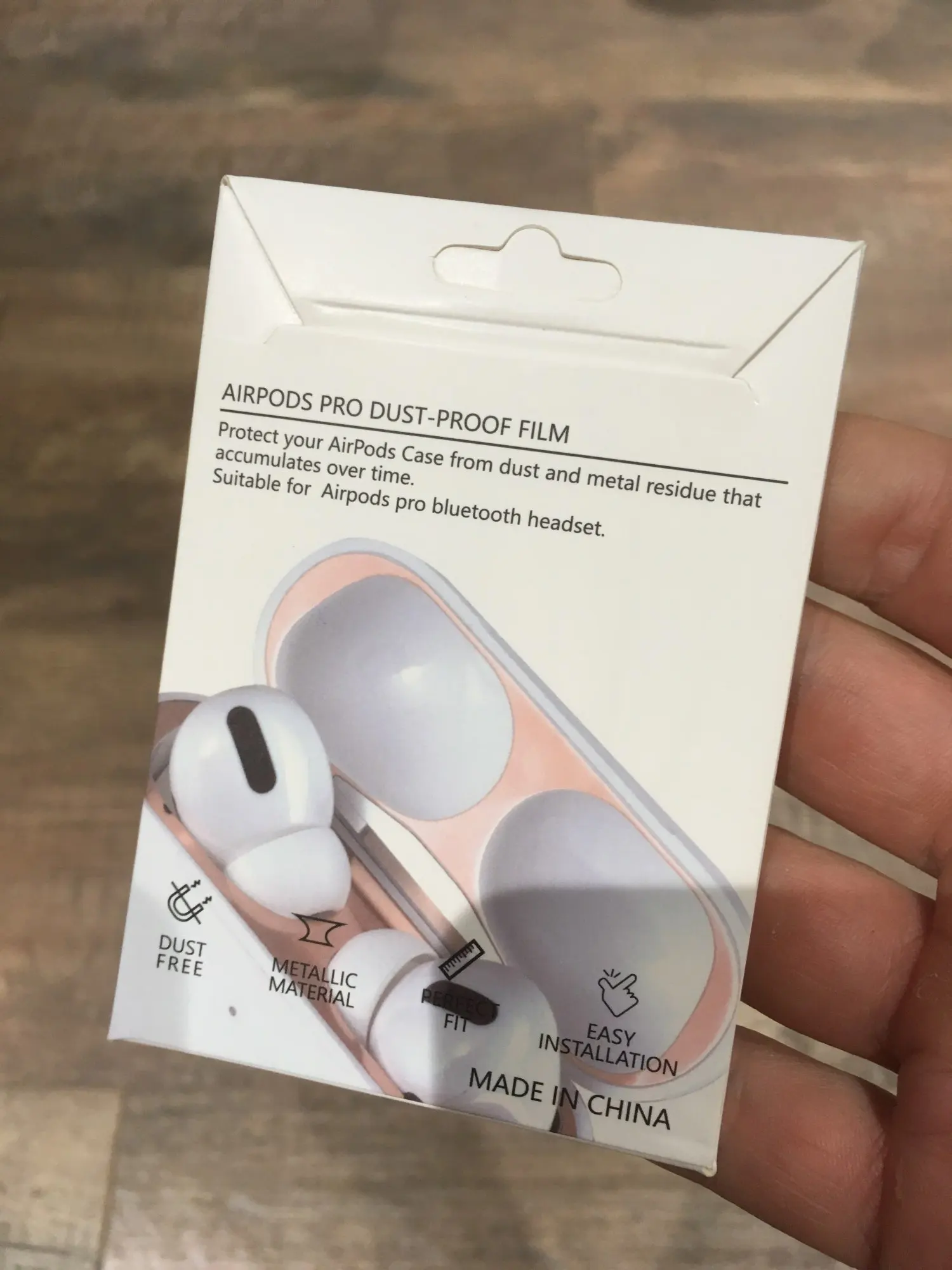 Очень хороший продукт правильно защищает внутреннюю часть AirPods и изготовлен из металла, так что он не прилипает к клею, который грязный, если не imantado и не пачкается больше, я рекомендую он заслуживает того, что стоит потратить эту цену, и это выгодно.