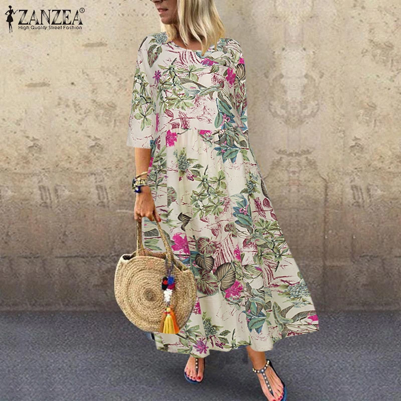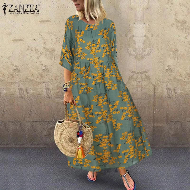 Женское плиссированное платье, Макси-Платье с принтом, с рукавом 2021, осень-лето 34