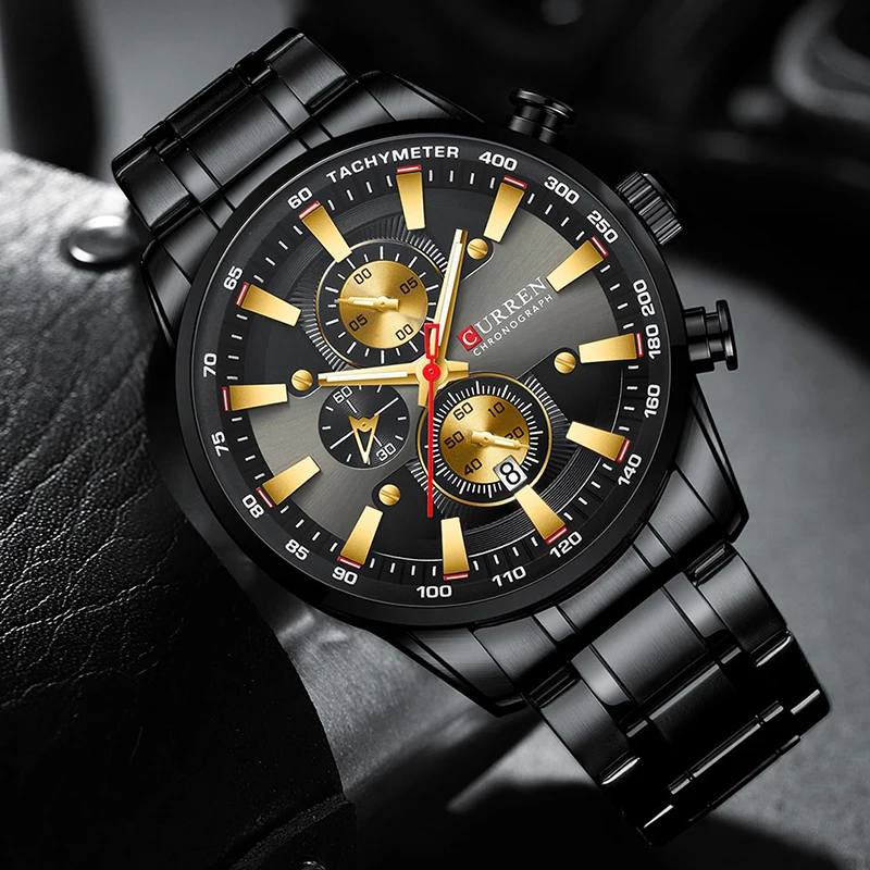 Новые часы CURREN для мужчин, лучший бренд, черные золотые кварцевые спортивные наручные часы, мужские часы с хронографом, дата, нержавеющая сталь, мужские часы