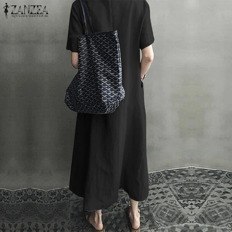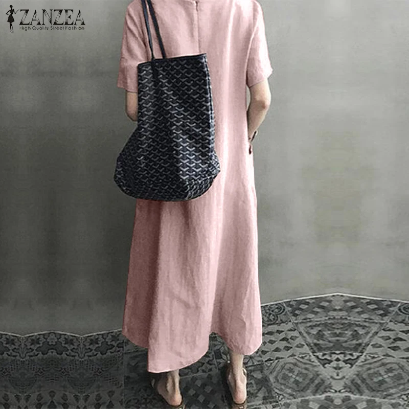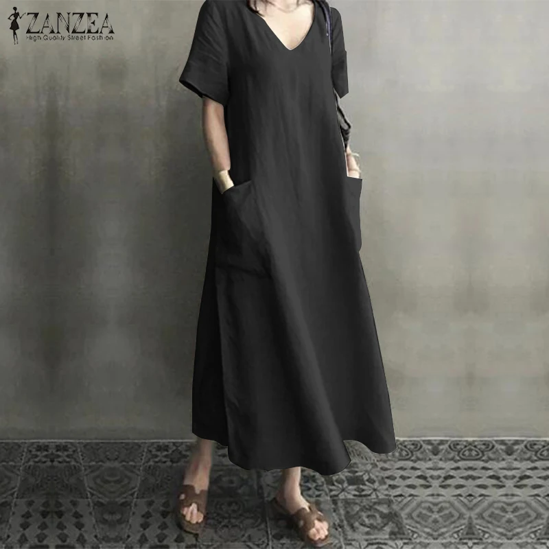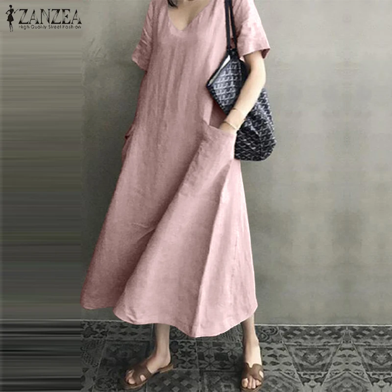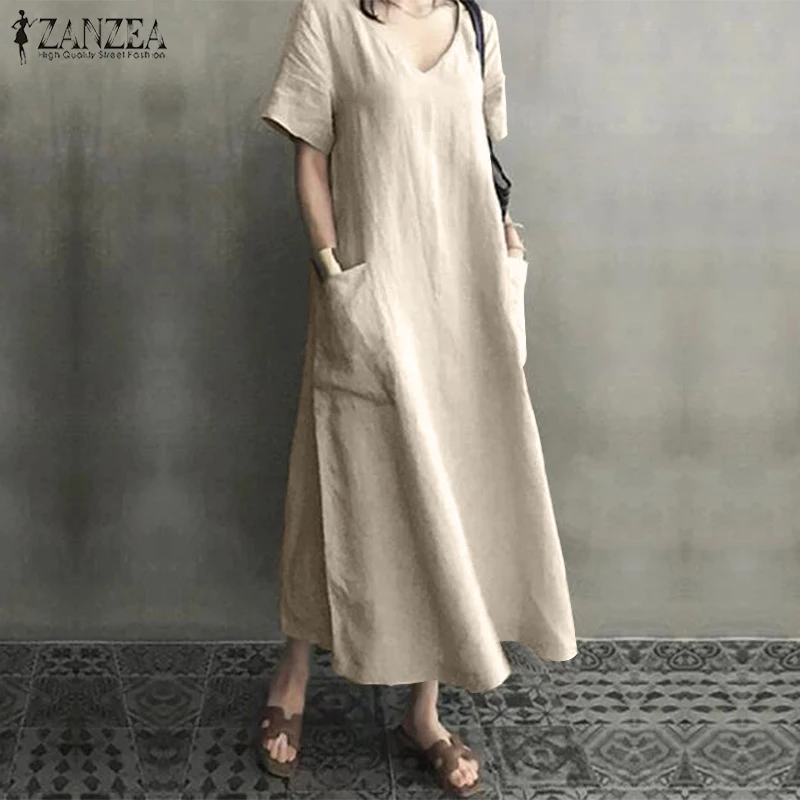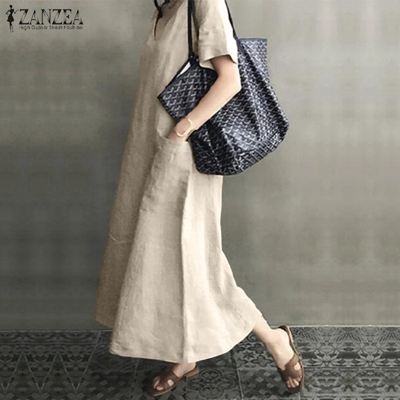 Платье ZANZEA женское длинное из хлопка и льна, повседневное плявечерние вечернее Макси-Платье с большими карманами, лето 2022