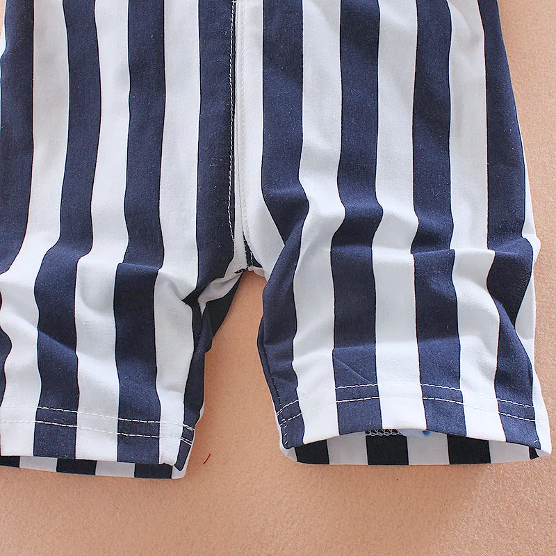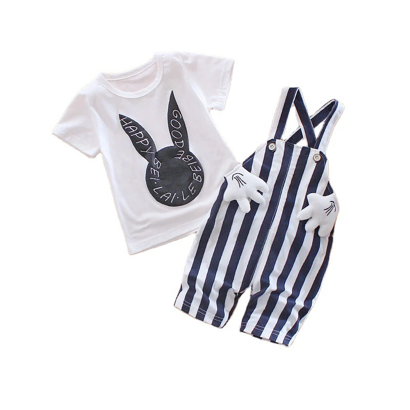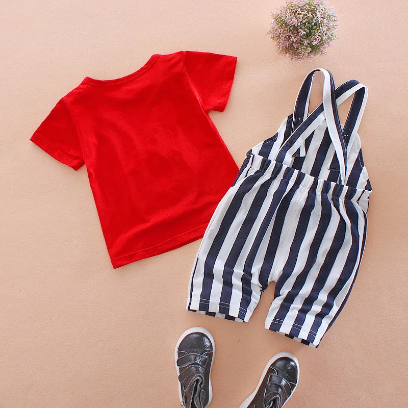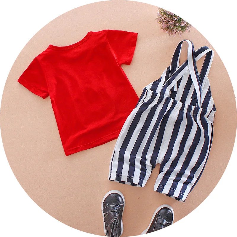 Летняя детская одежда милые повседневные футболки для мальчиков и девочек Полосатые Комбинезоны 2 шт.компл. хлопковые детские костюмы с рисунком для малышей