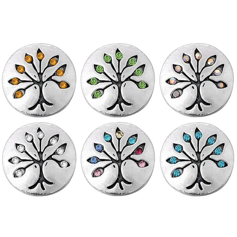 6 шт.лот DIY Кристальные металлические кнопки Древо жизни для ювелирных изделий 18 мм Металлические кнопки сделай сам браслет