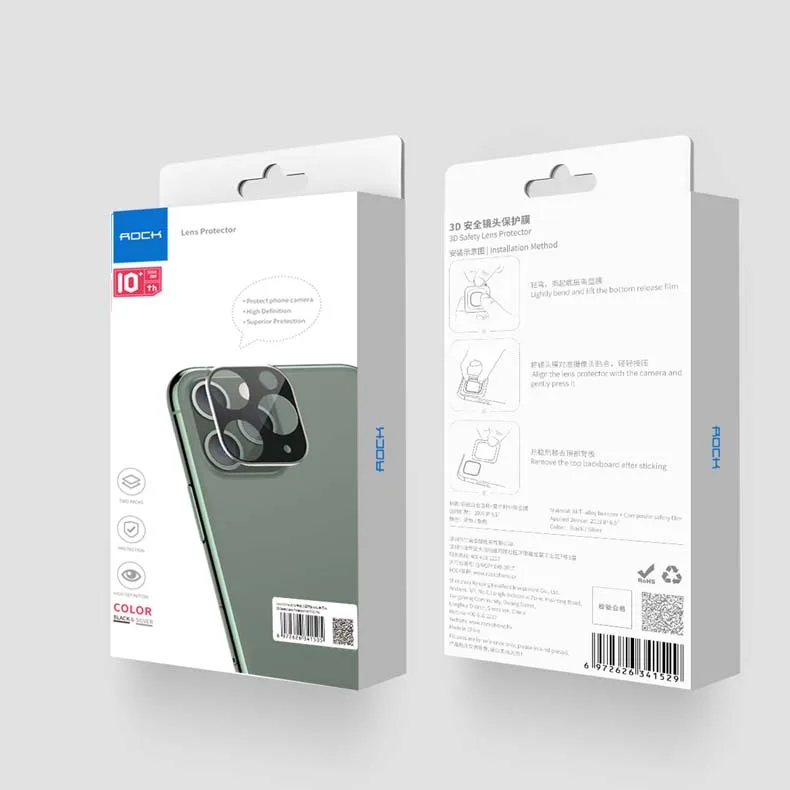 2 шт. Защитная пленка для экрана объектива камеры для iPhone 11 Pro Max Rock 0,25 мм металлическая рамка + пленка для объектива камеры из закаленного стекла для iPhone 11
