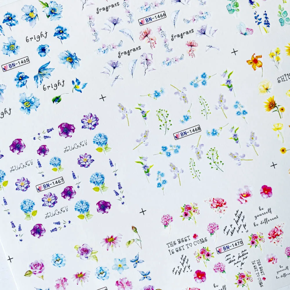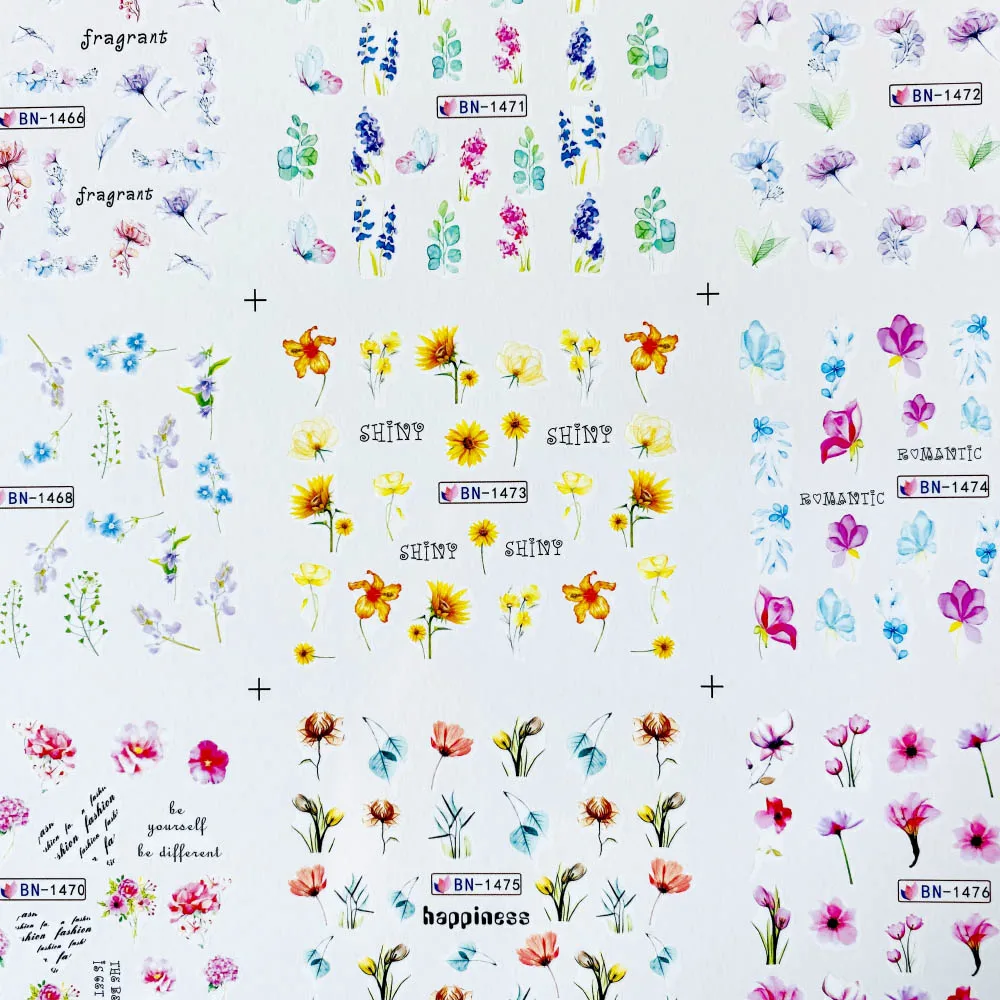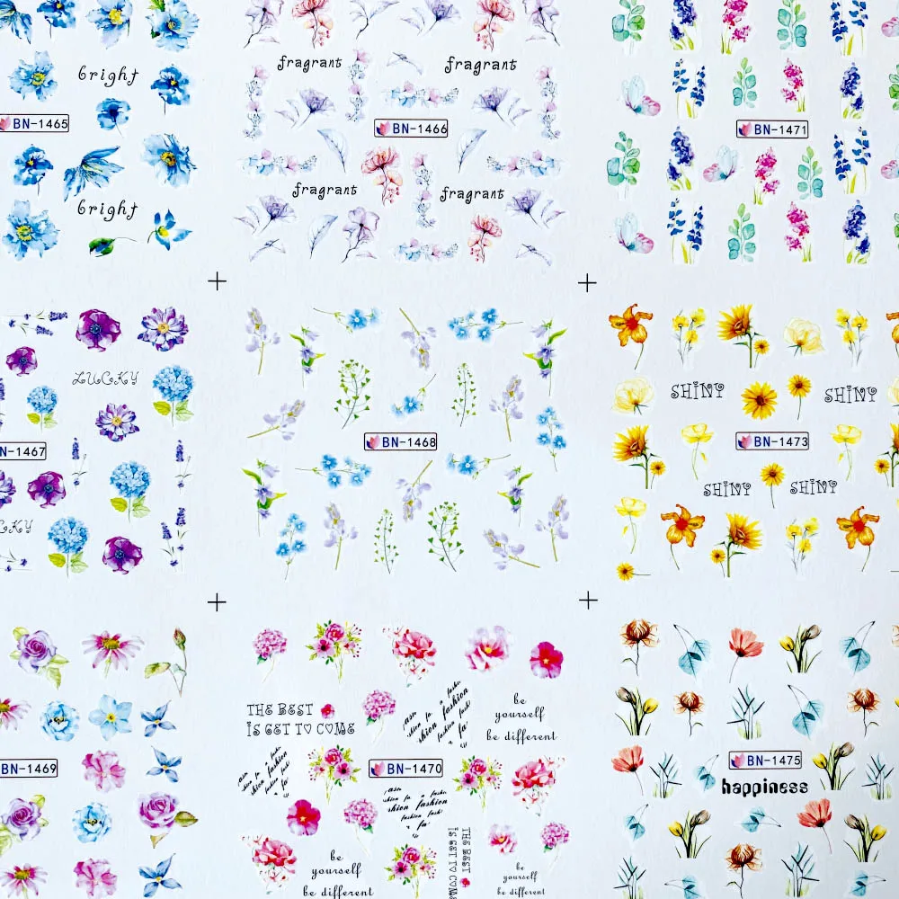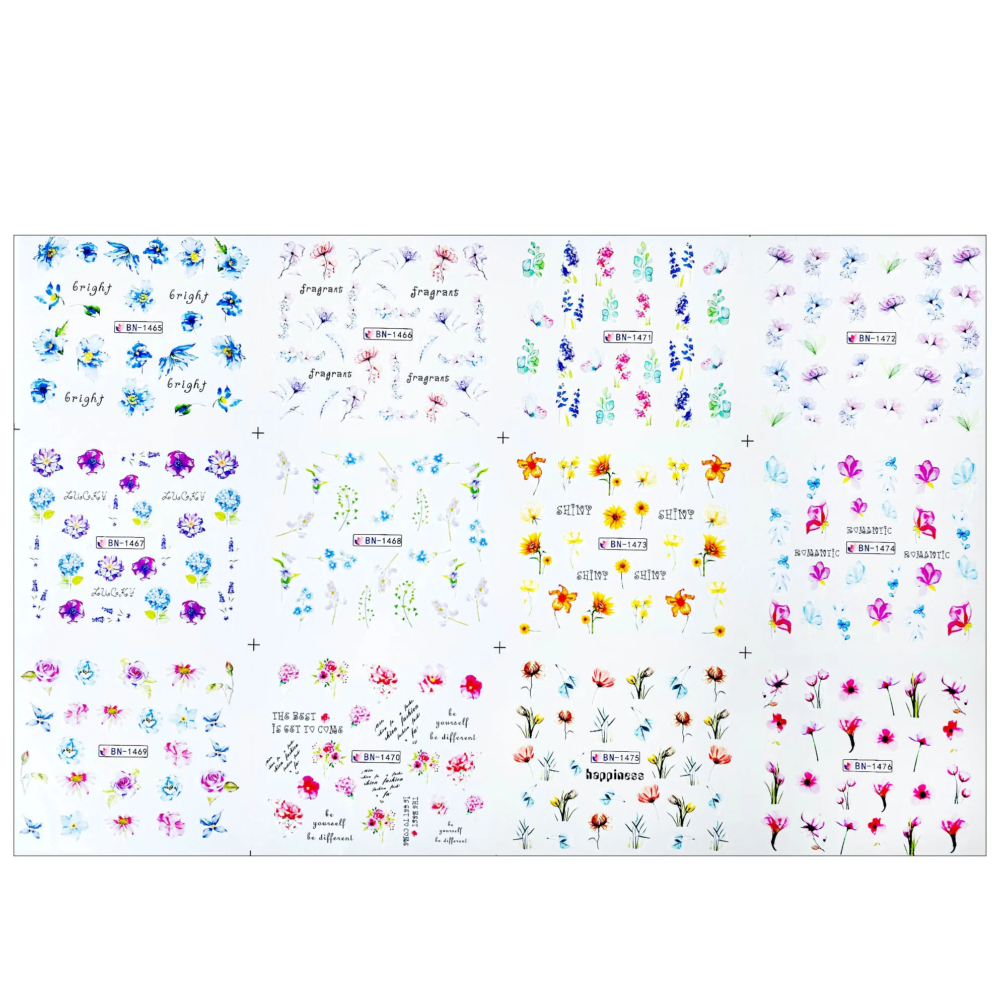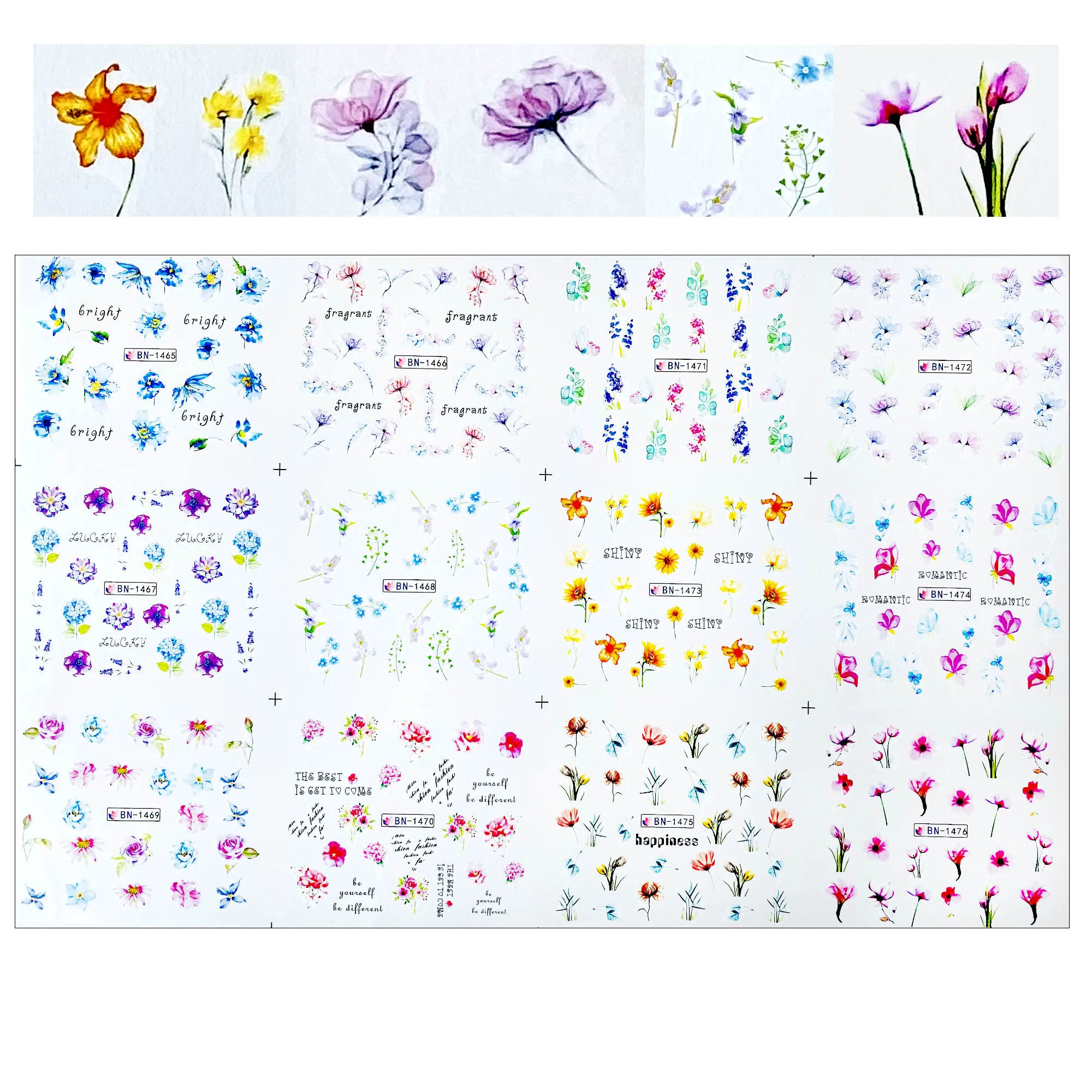 12 видов конструкций Красочные Цветочные наклейки для дизайна ногтей Красота слайдер цветение красочный растительный узор Маргаритка Лилия Жасмин наклейки для ногтей 2020 Новинка