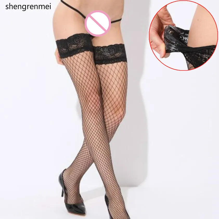 Женские силиконовые Нескользящие чулки shgear Mei, кружевные чулки до бедра, женское нижнее белье, экзотические колготки в сеточку