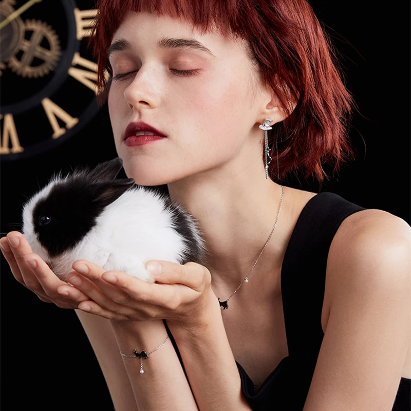 Женские романтичные серьги-кольца с кроликом, из стерлингового сере...