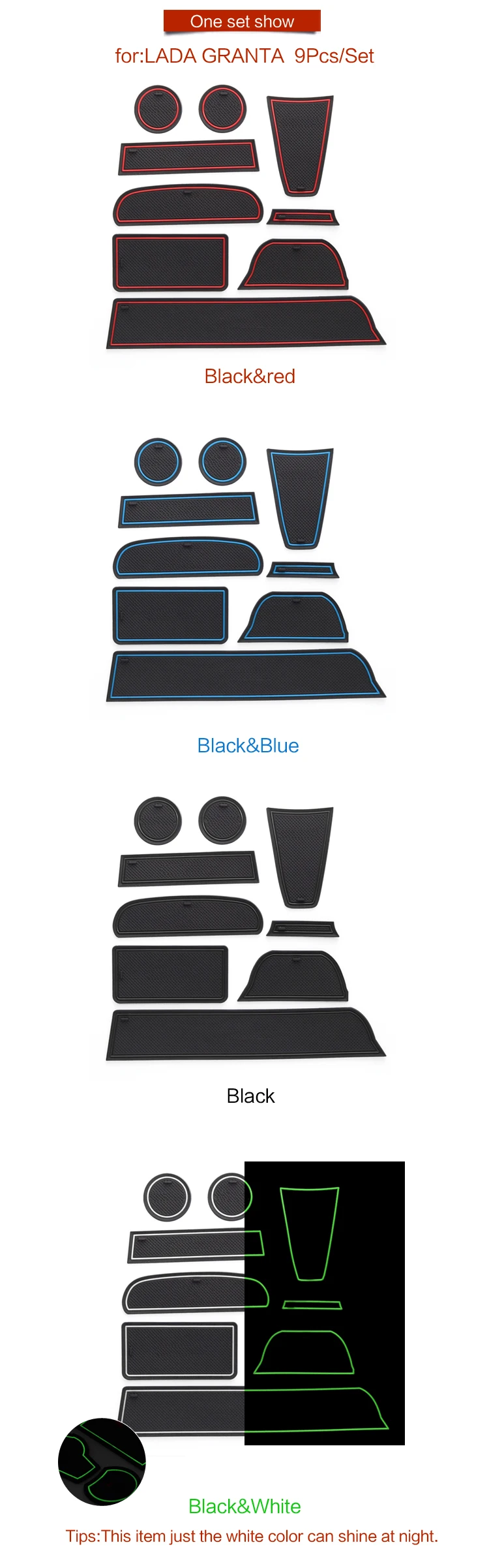 Посылку получил довольно быстро, качество товара замечательное! Изначально заказал с логотипом синего цвета, но из общения с продавцом выяснилось что коврики с логотипом белого цвета ещё и светятся в темноте, попросил отправить белые, все 16 ковриков пришли в целости и сохранности, подошли на ладу гранта по местам, очень рад! всем советую! Продавцу спасибо!