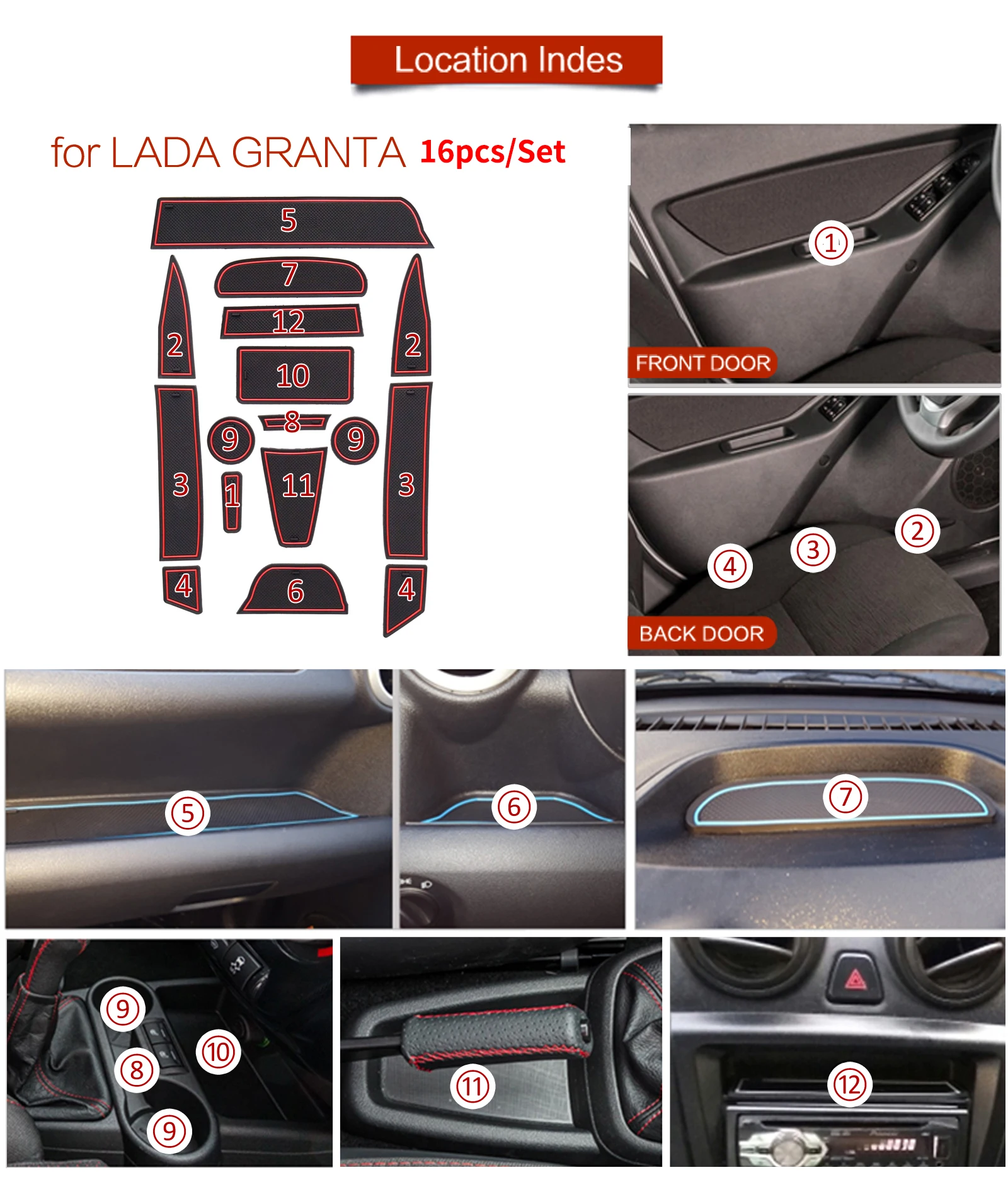 Противоскользящий коврик Smabee для подстаканников, для Лада, гранты, для интерьера, нескользящий коврик, аксессуары, накладки на двери, 9 шт.16 шт., наклейки для стайлинга автомобилей