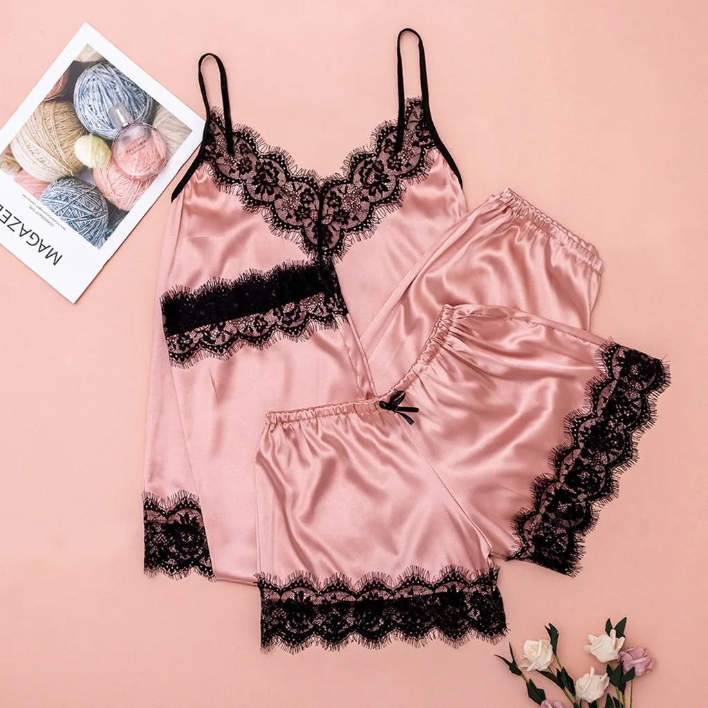 Женская кружевная атласная пижама, 3 шт.