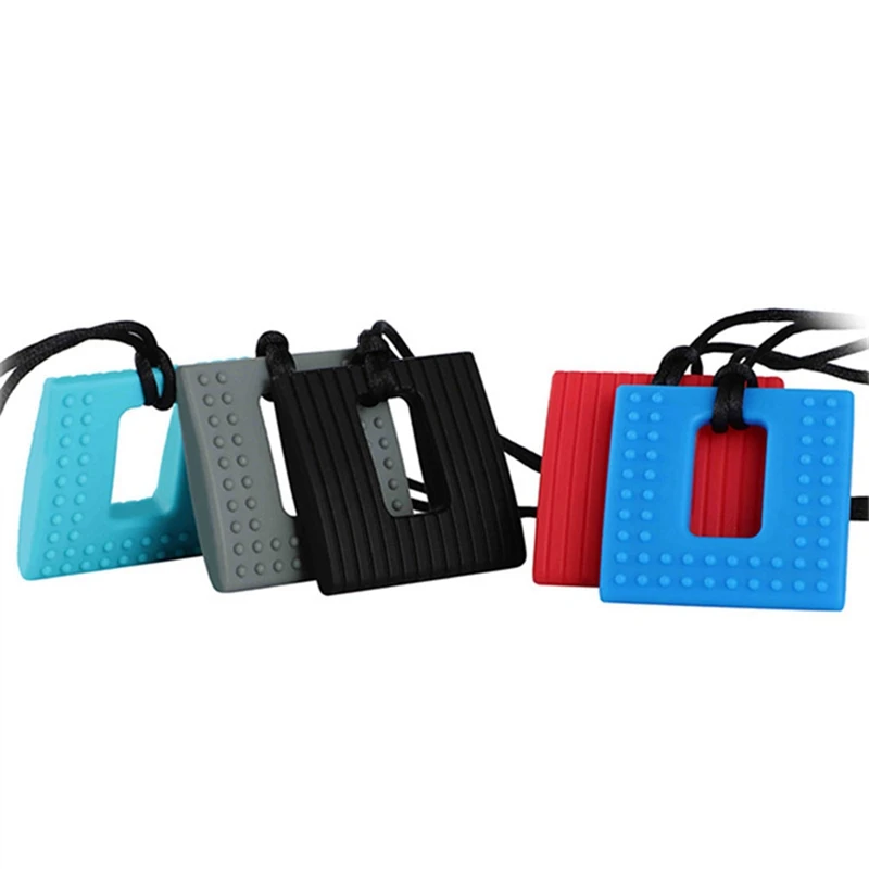 Силиконовый Прорезыватель для зубов, жевательное ожерелье с квадратной текстурой для зубов при аутизме