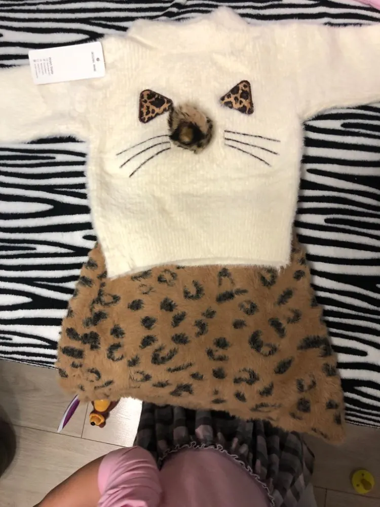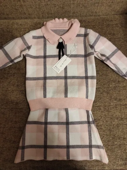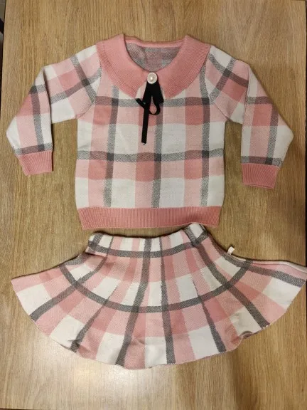 Замечательный тёплый и мягкий, красивый качественный костюм. На ребенка 100см ростом как раз, из юбки быстро вырастет, кофточку подольше поносит. Продавец заказ отправил очень быстро, посылка пришла недели за 2.