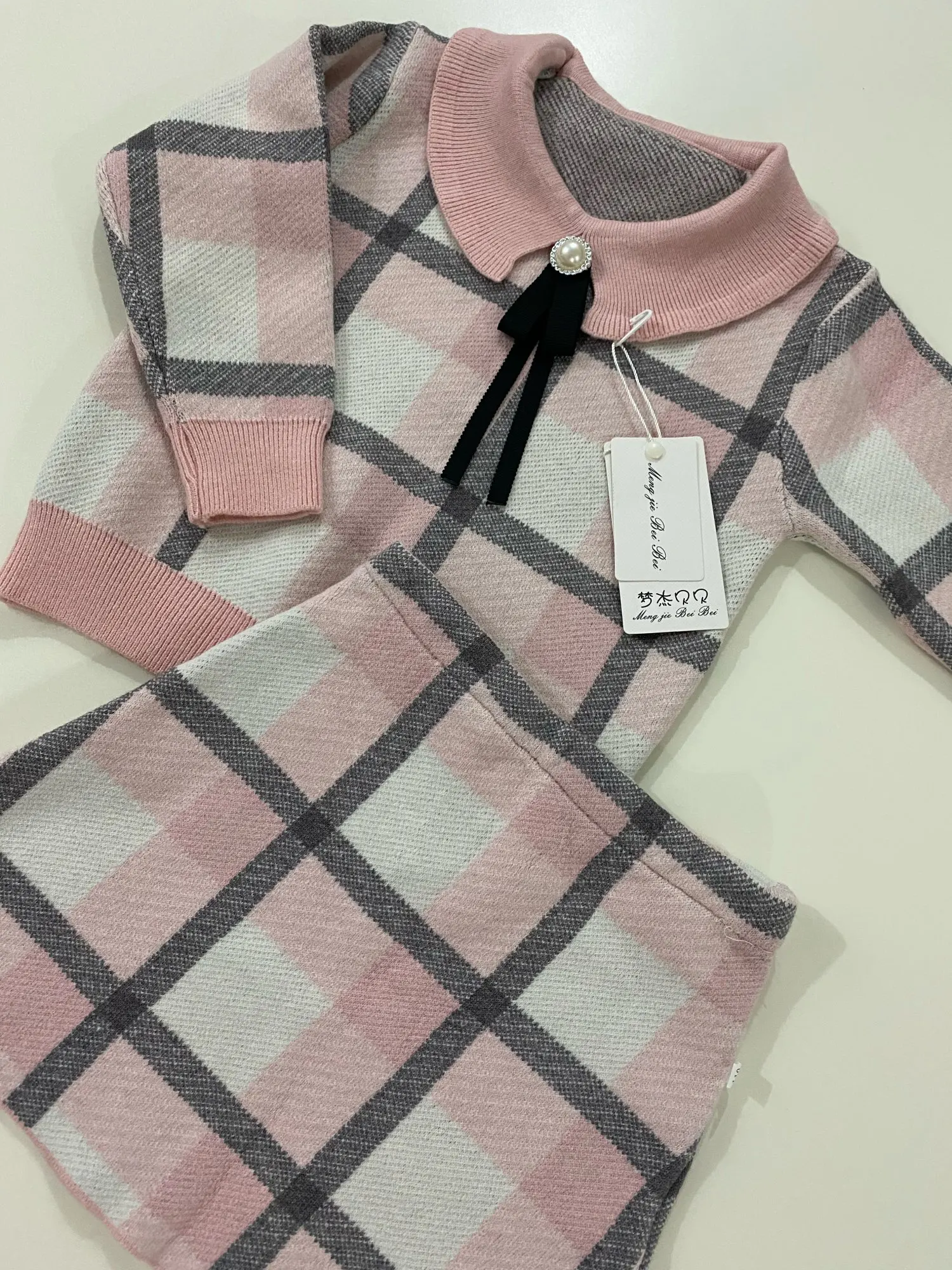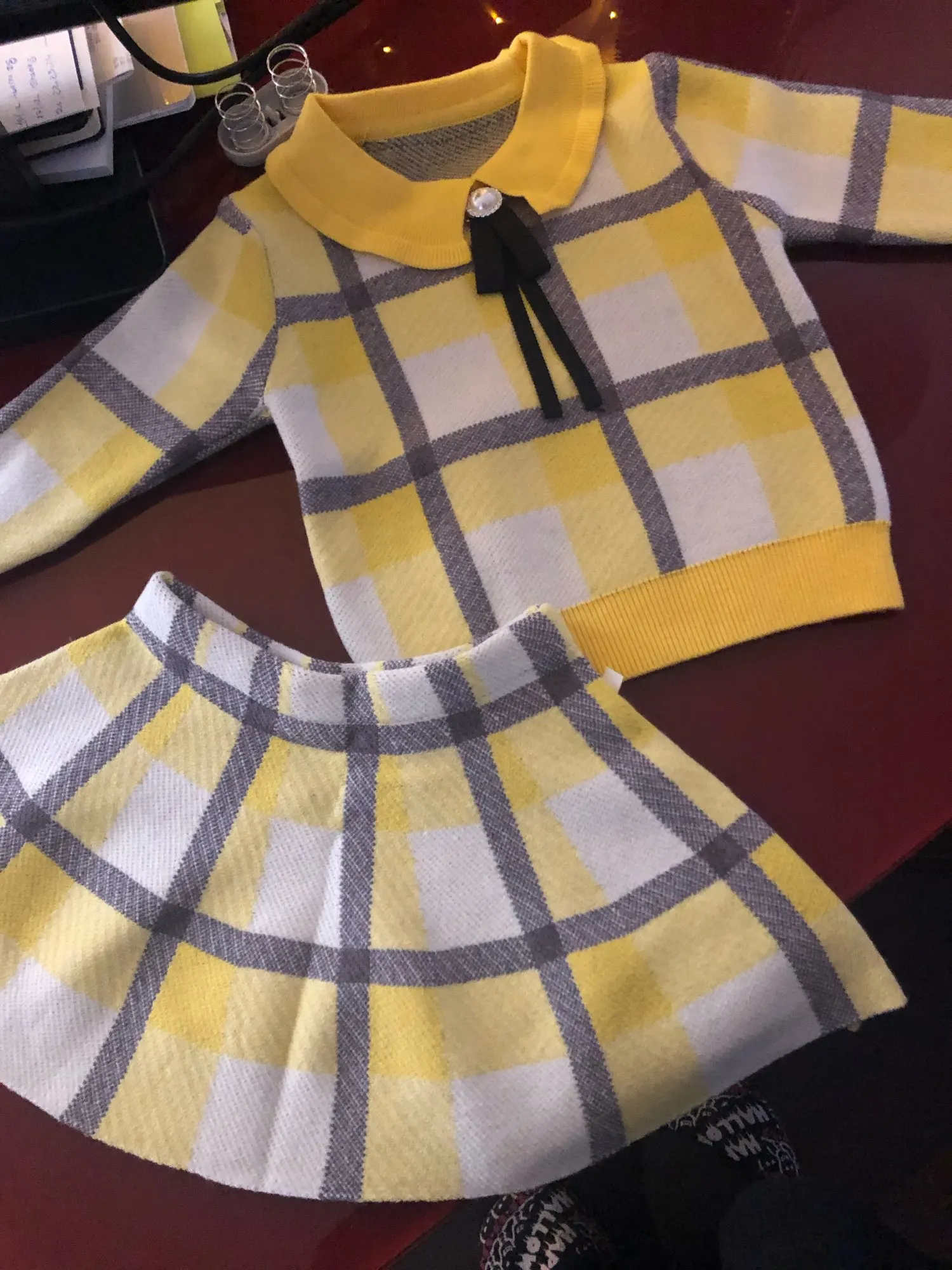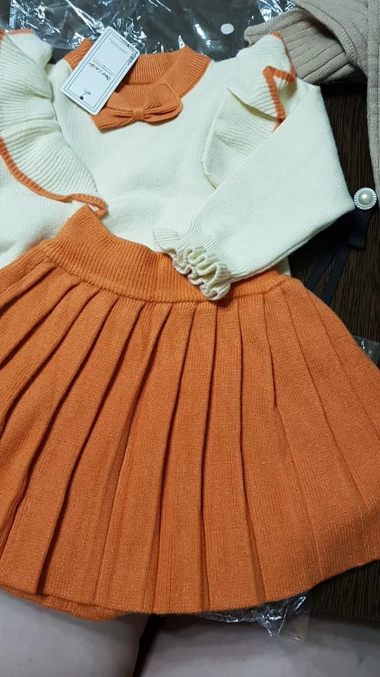 Костюм для девочек вязаный из Свитера и юбки, Осень-зима 2021