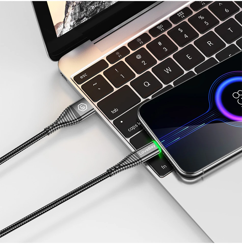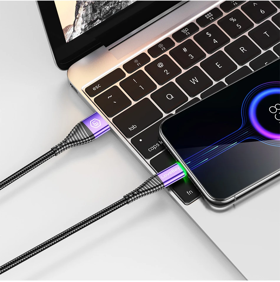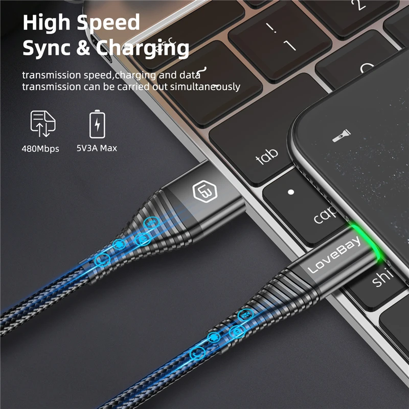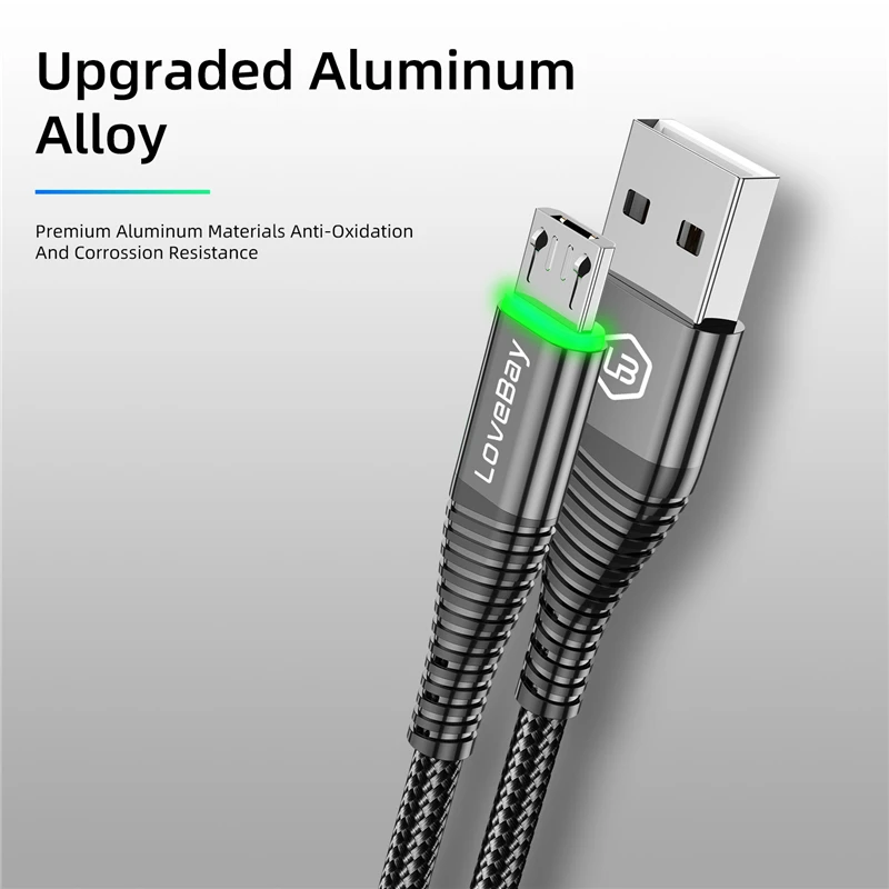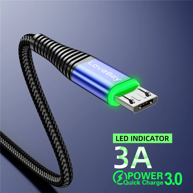 Кабель Lovebay Micro USB, 2 м, со светодиодной подсветкой, 3 А, быстрая зарядка QC 3,0, для Xiaomi, Samsung, Android мобильный телефон, кабель для передачи данных, быстрая зарядка