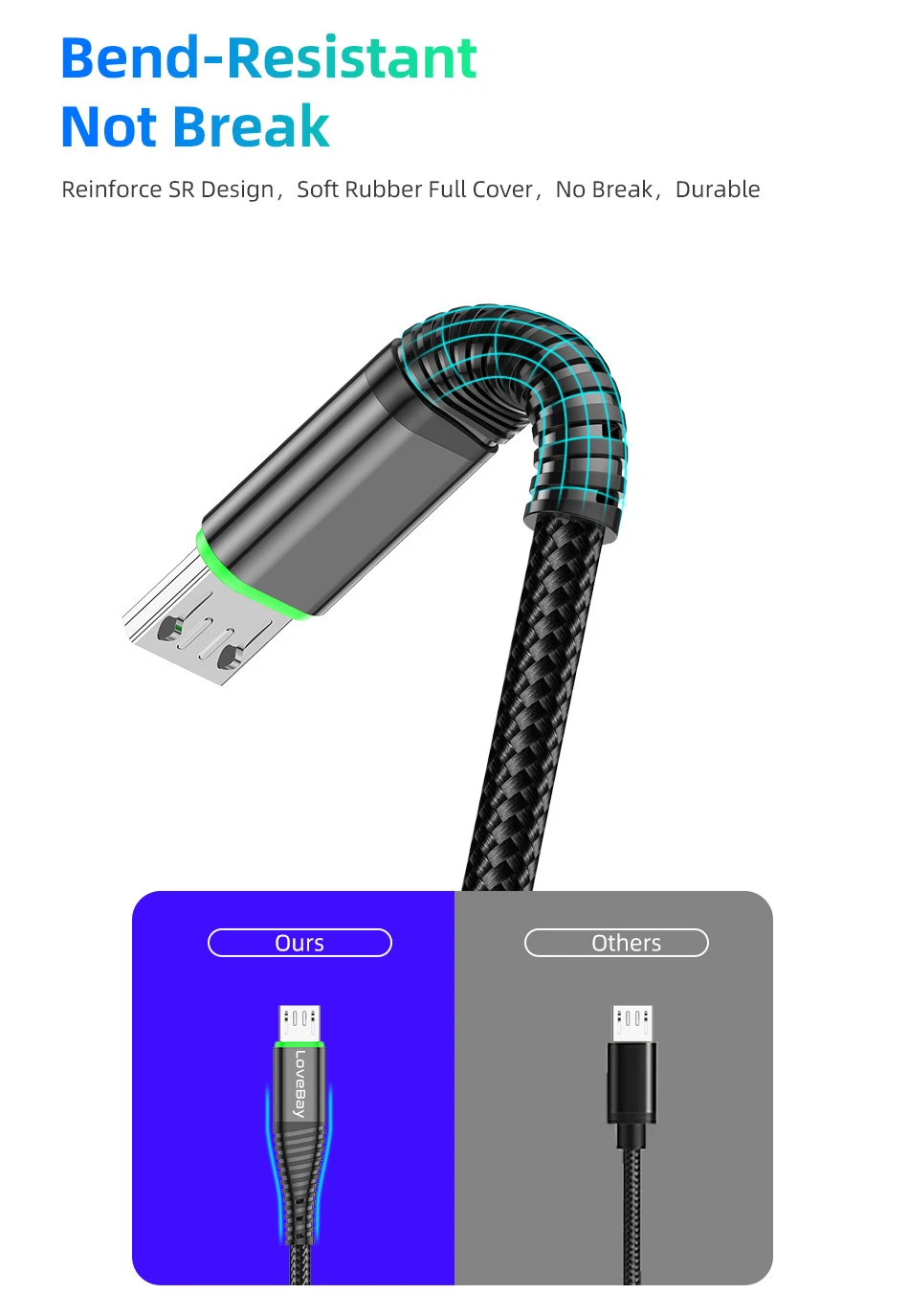 Отличный кабель. Мягкий и очень гибкий, со слегка шелковистой поверхностью поетому практически не запутывается. Даже если его собрать в клубок он моментально распутывается сам стоит его только потянуть. Подсветка кончика работает всё время поетому его легко можно найти в темноте (я почему-то ожидал что она будет работать только при подключении). Идеально подходит для того чтобы валяться на кровати со смартфоном, для чего я его собственно и брал. Я доволен покупкой и рекомендую этот к приобретению.