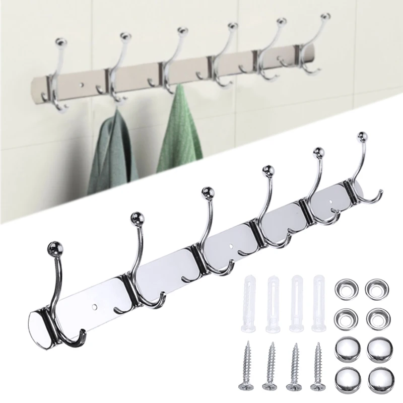 1 шт. 45 см Прочный 6 крючков серебристый держатель для одежды из нержавеющей стали для кухонная настенная вешалка
