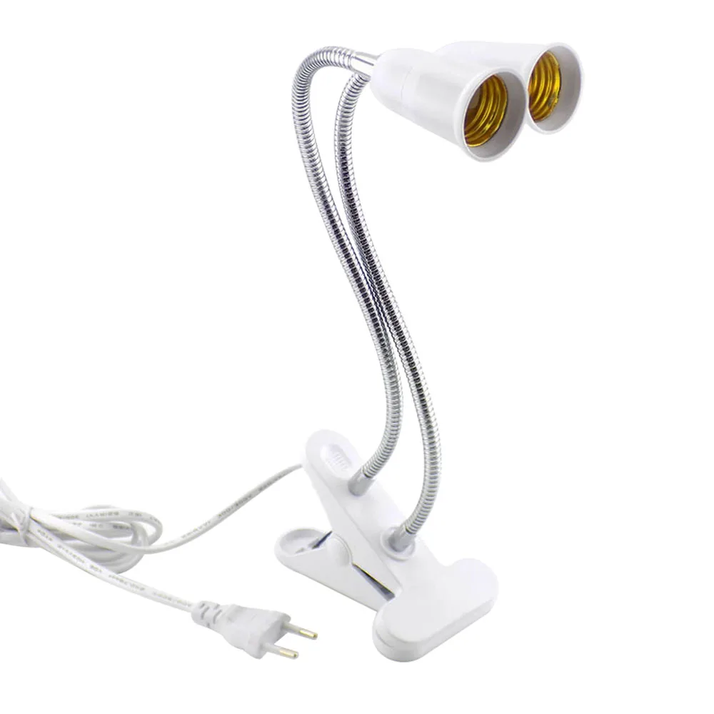 Гибкая оссветильник ительная лампа E27 с 2 головками, держатель для вилок переменного тока, Настольная розетка с зажимом для книжной комнаты, дома, комнатного ночника, освещение для выращивания