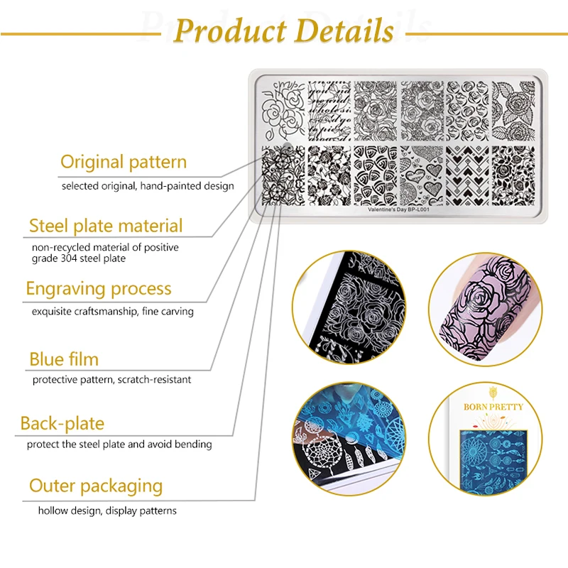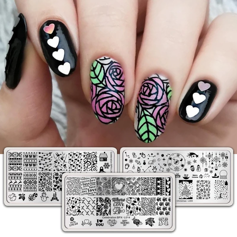 BORN PRETTY штампованные пластины День Святого Валентина Рождество цветок изображение ногтей штамп шаблон из нержавеющей стали инструмент для печати