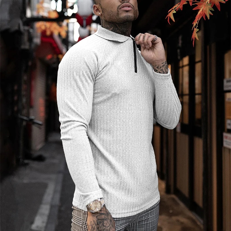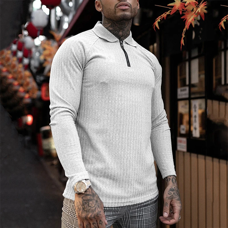 Мужская трикотажная рубашка-поло с длинным рукавом