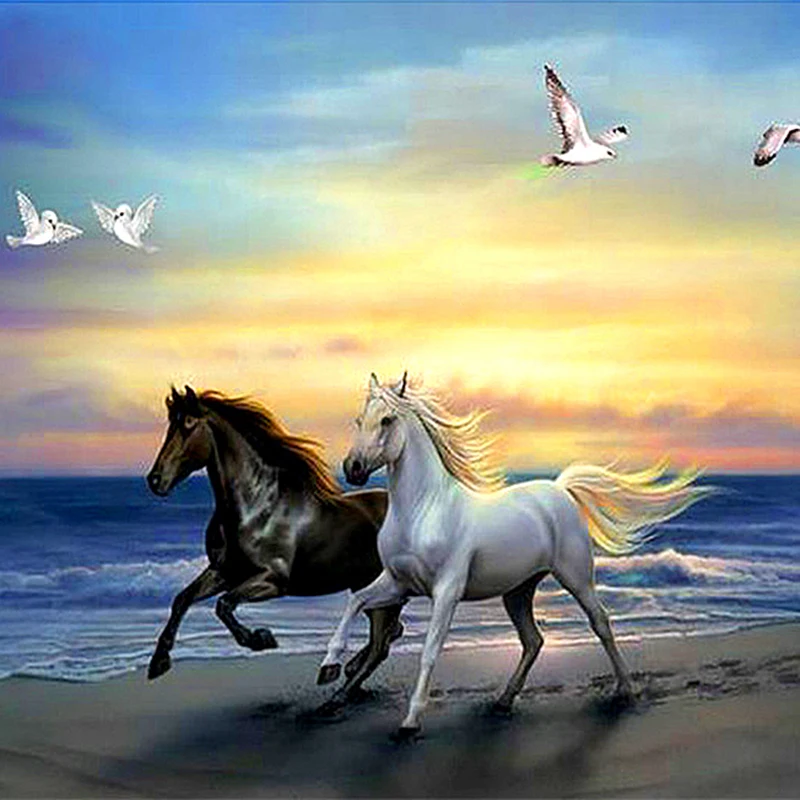 Алмазная Вышивка Узор Мозаики 5d diy алмазная живопись белый конь черный конь картина из квадратных стразов